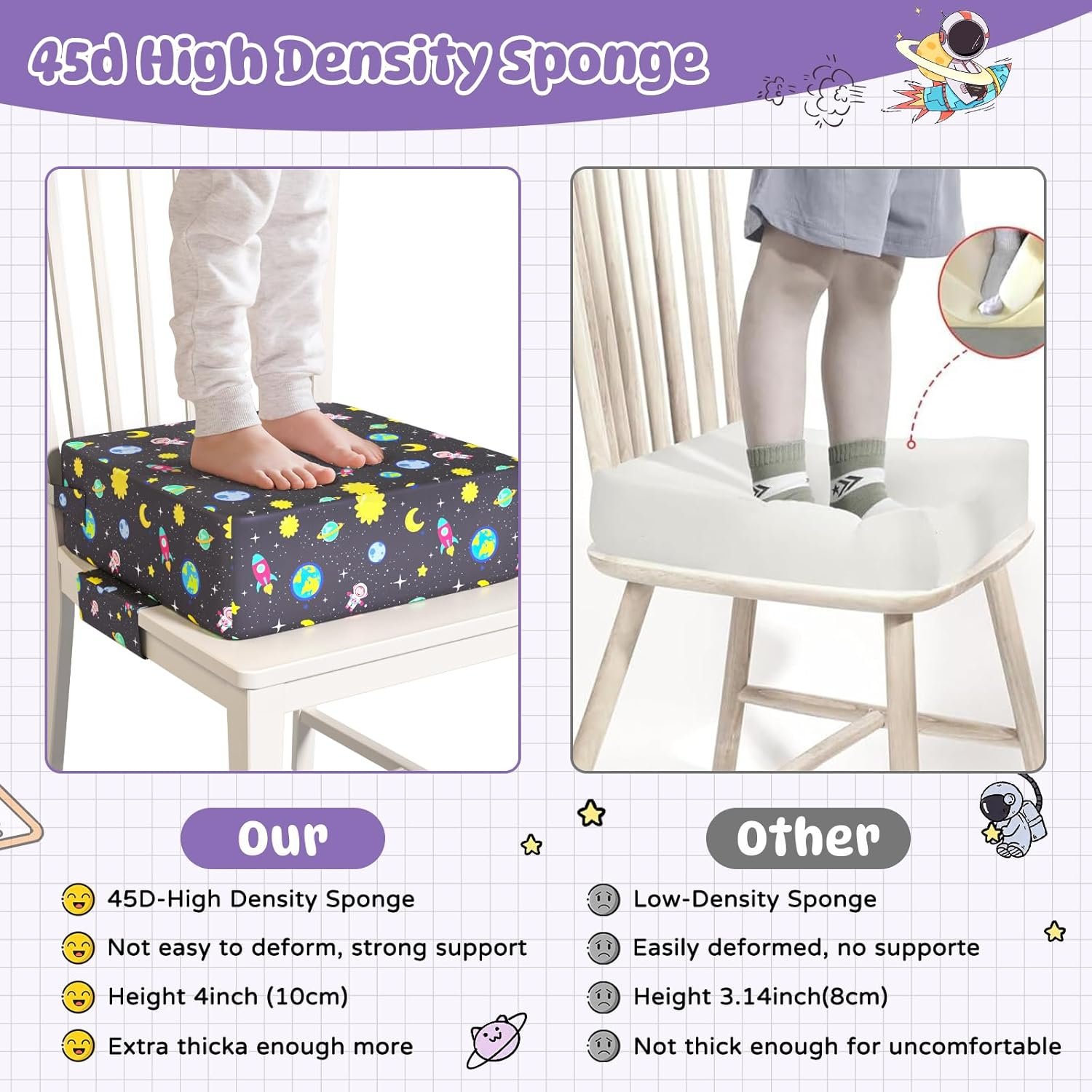 【High-Density Durable Support】Our toddler booster seat is filled with 45D high-density sponge, commonly found in sofas. This offers superior support and load-bearing capacity compared to the 30D sponge commonly used on the market, maintaining its shape even with prolonged use