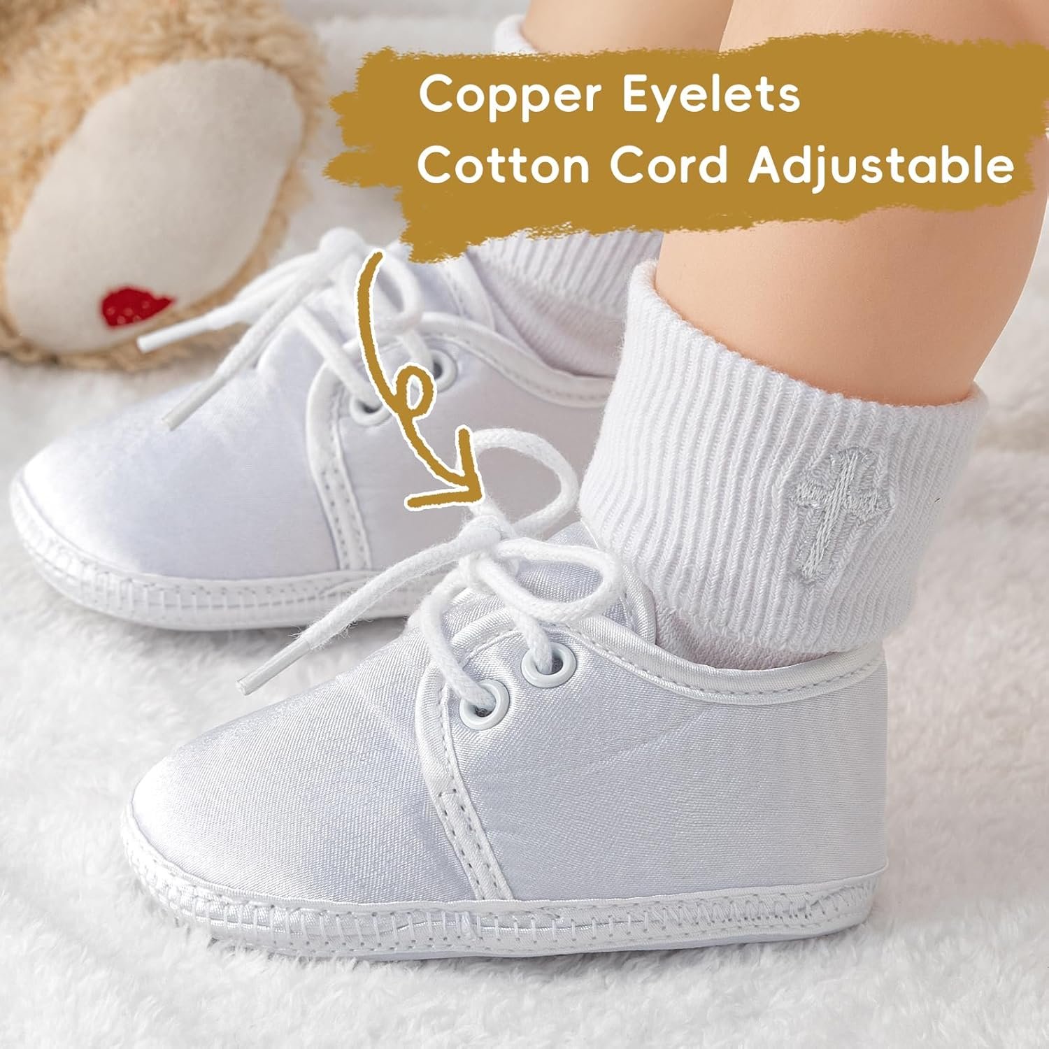 Booulfi Baby Boy Shoes Walking White Infant Newborn Shoes Booties Easter Baptism Christening Outfits Gifts for Boys Girls