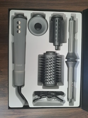 At first, I was disappointed because neither the packaging nor the user manual mentioned the presence of negative ions. But after testing, you indeed get beautifully smooth shiny hair from this device. I’ve never had this beautiful before! The curling iron function gets very hot (hence the included gloves!). You can’t set the temperature either. The warm/cold function is useful. So I use it for curling. But then it gets quite hot. I find the sound to be a disadvantage. It is quite hard, especially if you want to make curls and spend a long time on it, it’s not pleasant. So, for blow-drying, straightening, and volume, this device is great! As a curling iron, I don’t find it ideal.