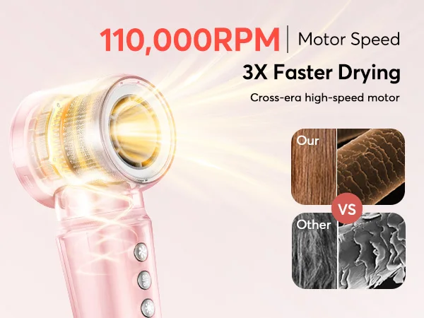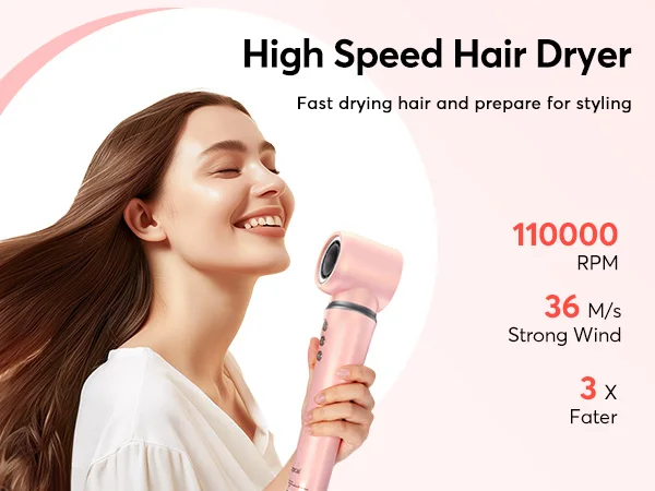 〠110000 RPM High Speed Hair Dryer Set】The airstyler comes with self-designed high-speed motor with up to 110,000rpm produces a fast and powerful airflow with a speed of up to 20M/s, 6 times more powerful than a conventional hair dryer warm air brush. For ultra-fast drying without heat damage, it saves your styling time in half. Innovation for an exceptional styling experience.