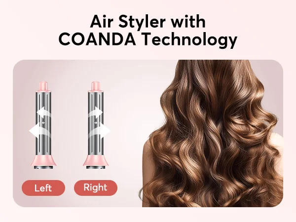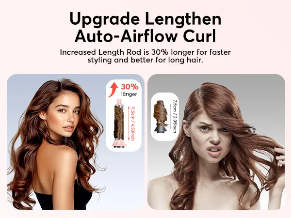 ã€2025 Upgrade Auto Airflow Curl System】Upgrade lengthening the Hair Styler air Curler wand in the left/right direction, Made of aviation aluminum material, it can heat up faster and has stronger adsorption to hair. The powerful continuous Negative Ionic air flow ensures that the hair is automatically wrapped to the surface of the curling iron, and can be created without overheating, creating volume, smoothness, and natural curls.