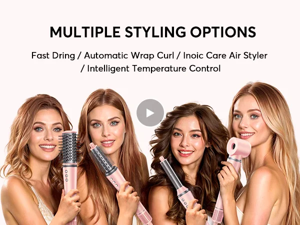 ã€5 in 1 Hair Styler Set】magic styler is a multifunctional styling set that can perfectly meet your various hairstyling needs. The 5 in 1Hair Styler includes 1 hair dryer, 2 air curlers in different directions, 2 hair dryer curler, Can be used as a blow-dryer, curling iron, volumizing brush, bang brush, and straightening brush.
