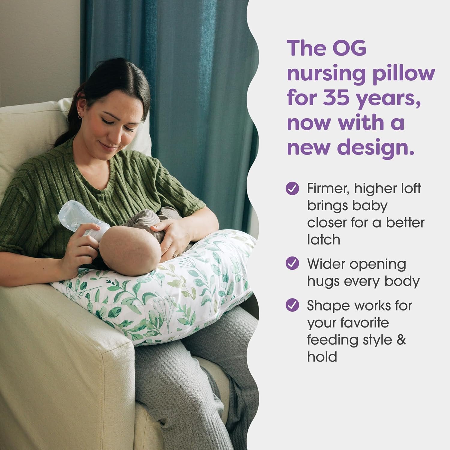 Boppy Nursing Pillow, Green Sage Leaf, Larger, More Supportive Pillow for Breastfeeding and Bottle Feeding; Firmer Fill, Higher Lift, Larger Area Than Original Nursing Pillow; JPMA Certified