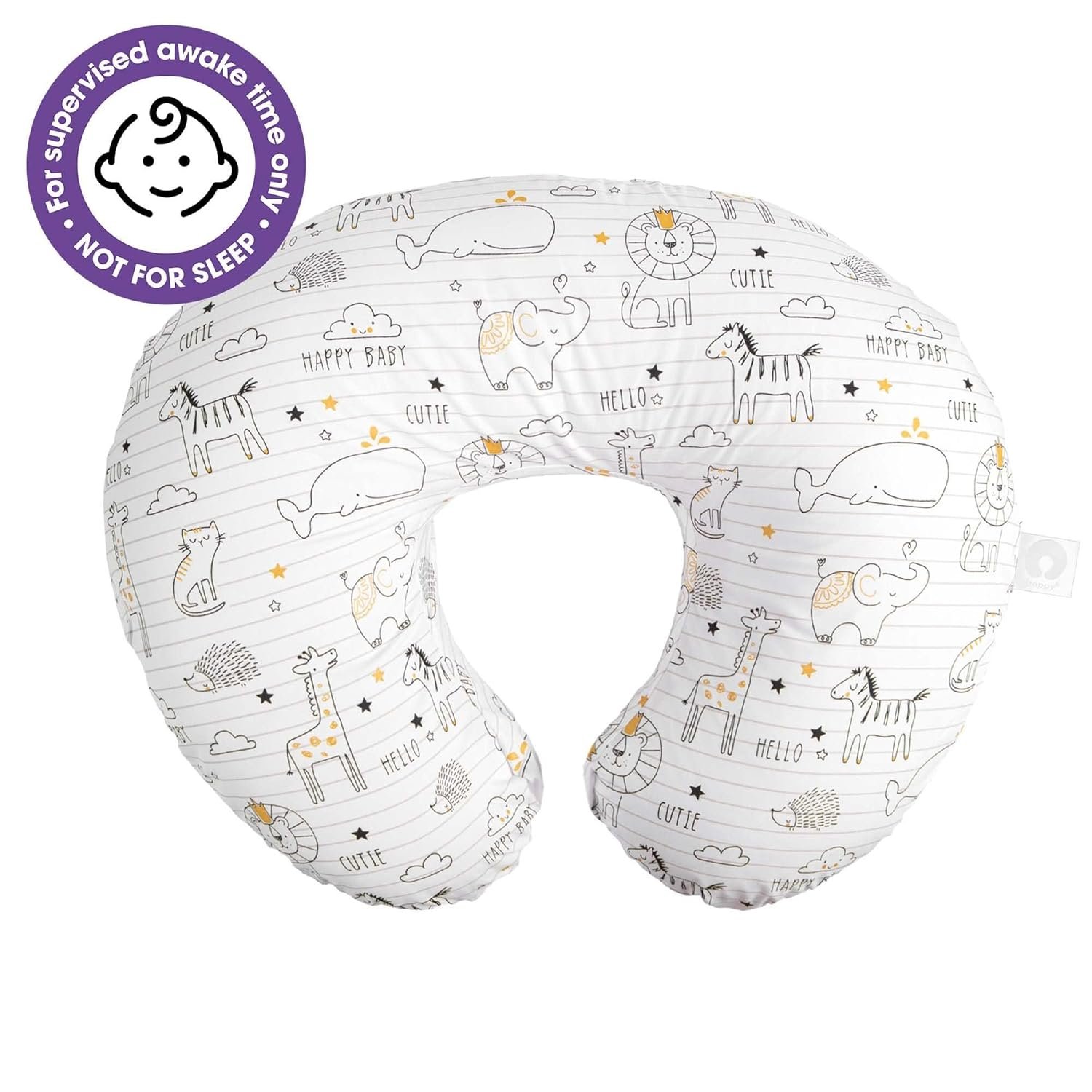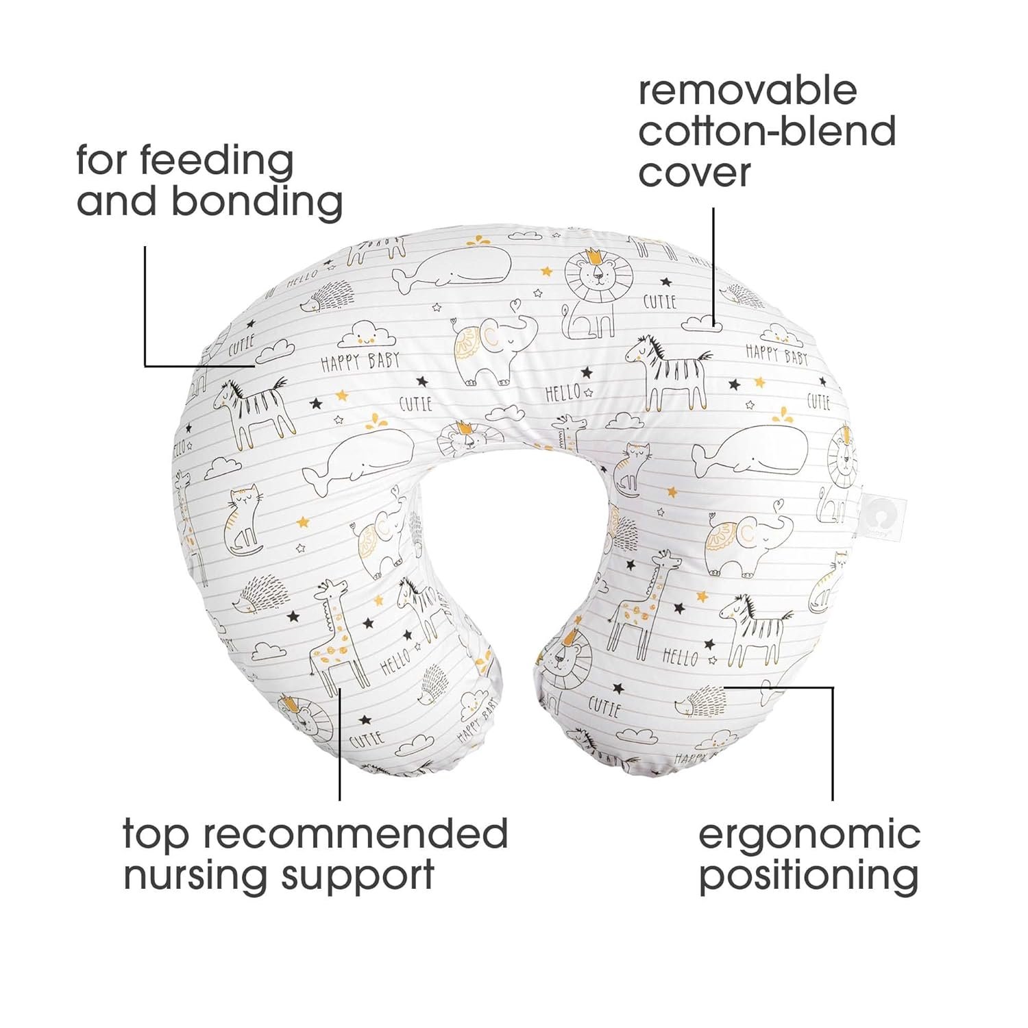 This Boppy nursing pillow provides ergonomic support for breastfeeding, bottle feeding, and bonding. The c-shaped design allows for multiple feeding styles—cradle, cross cradle, football hold and bottle feeding. Aids positioning for a better latch and back relief. Machine washable for easy cleaning with removeable pillow cover for added ease. The average nursing mom spends over 35 hours per week breastfeeding. Get the tools for the job with the Boppy Original Support Nursing Pillow. The beltless design allows for an easy, one-handed placement with no fuss, and the Miracle Middle panel provides a seam-free connection with your body for a more comfortable fit for c-sections or stomach tenderness after birth. This award-winning Boppy nursing pillow is a registry must-have and a parent favorite. Small enough to easily fit in your rocking chair or glider, but big enough to give the support you need. Support for you and baby with hypoallergenic fiber fill and a removable cover to help keep your breastfeeding pillow cleaner longer. A variety of Boppy Nursing Pillow Covers to fit your style are sold separately, from cotton blends to organics, so you always have backup on laundry day. Designed for your baby’s adult-supervised awake-time. This product is not for sleep. Thank you to the millions of parents who trust Boppy. Looking for extended sizes? Check out the Boppy Best Latch Support Nursing Pillow or the Boppy Anywhere Support Nursing Pillow for a perfect fit. This product should never be used for sleep. Our mission is to keep you feeling comfortable and confident with your decision to choose Boppy for high quality products, expert third party testing, and clear messaging. The AAP Safe Sleep Guidelines state that a baby should never be put to sleep with any pillow or plush product. Newborns should always be put to sleep on their back on a firm, flat surface free from loose blankets, pillows, stuffed toys, bumpers, and other soft items. Please always use products as intended.