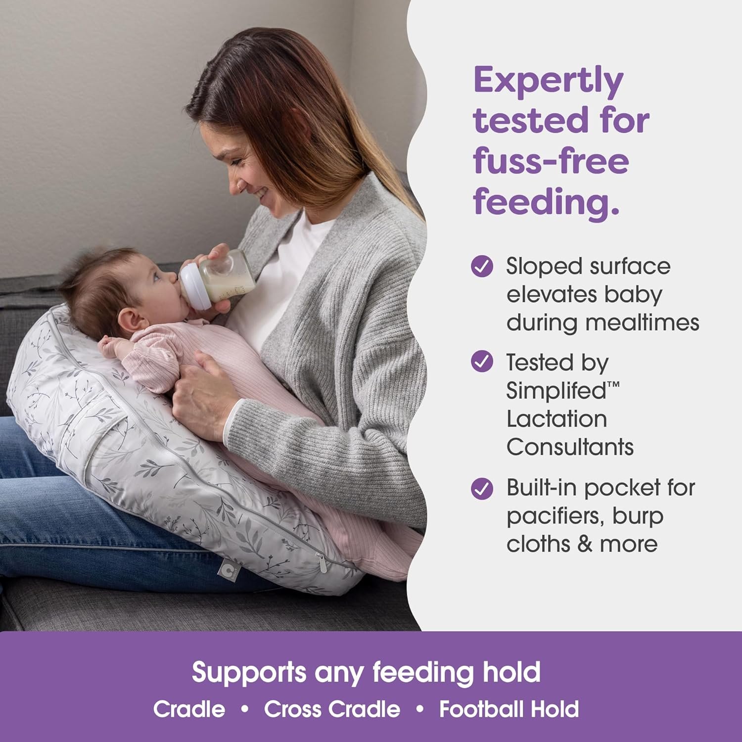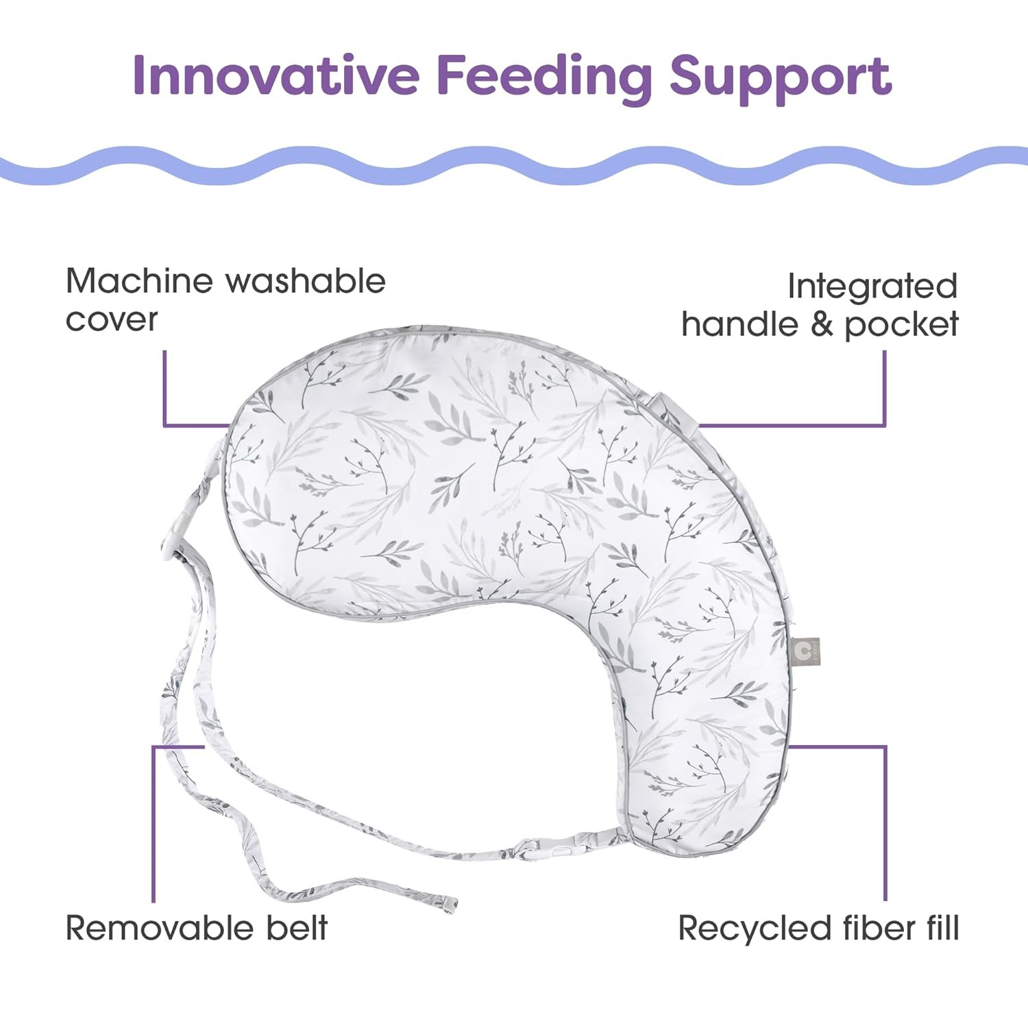 Boppy Uplift Nursing Pillow, Gray Gentle Leaves, Designed to Help Reduce Reflux Symptoms for Breastfeeding, Bottle Feeding or Combo-Feeding; Plus-Sized, Comfortably Contoured Feeding Pillow