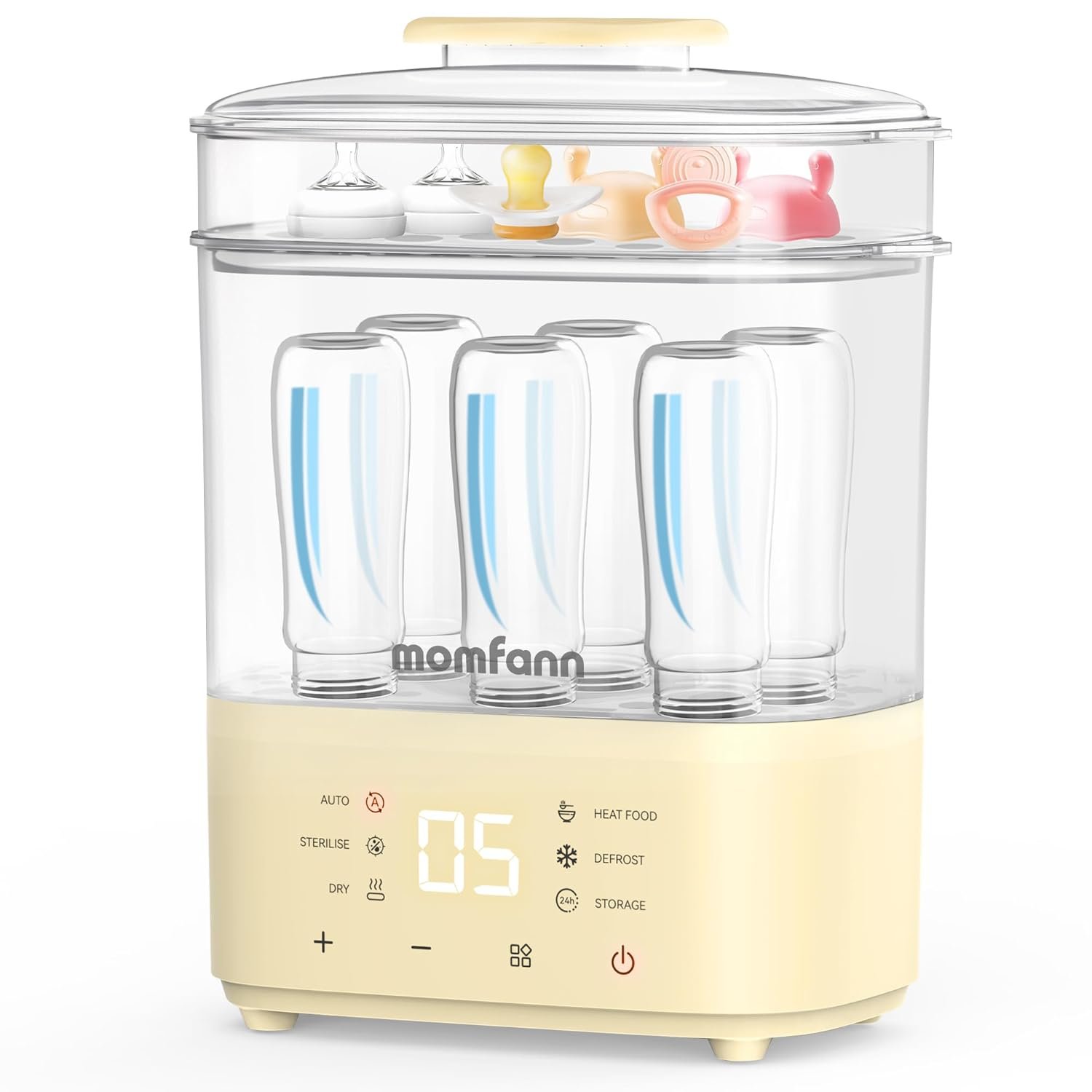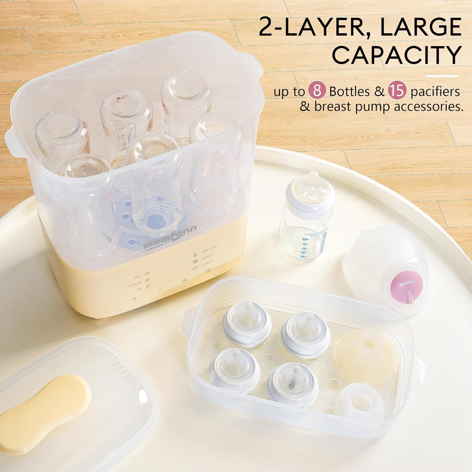 Designed with a fully automatic operation and LED countdown display, the Momcozy bottle sterilizer is easy to use and ensures precise and safe sterilization. Its spacious design allows for the sterilization of up to 8 bottles at once.