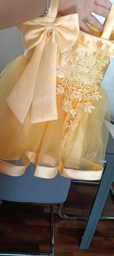 It’s beautiful 😍 The color is the same as the photo, the design is good. Good quality, I ordered size 18 months for my princess who weighs 22 pounds at 8 months.