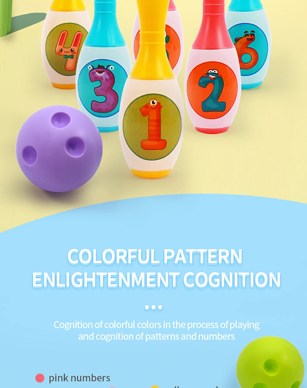 【Group Playing Toddler Activities】Kids can have endless fun indoor or outdoor. The bowling ball also can be played as a bouncy ball. Suitable toddler games among sisters and brothers, which can increase family interaction.