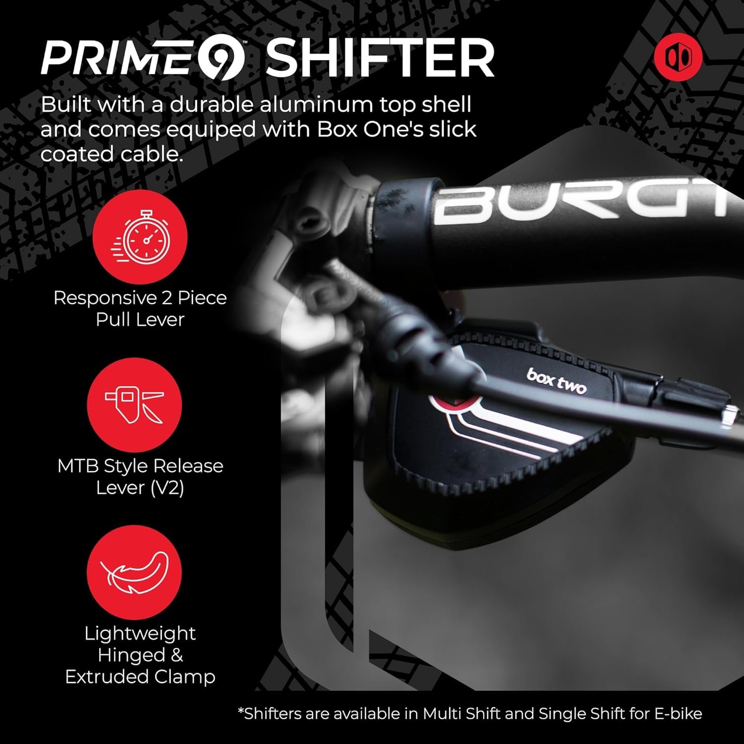 ✅SHIFTER: Experience flawless gear transitions with our Box Two Prime 9 Single Shift Bicycle Shifter. Equipped with the Box One Slick Coated Inner Cable, each swing delivers a swift and precise shift. Hinged and extruded clamp, 2 pc pull lever, and die-cast top shell for ultimate durability.