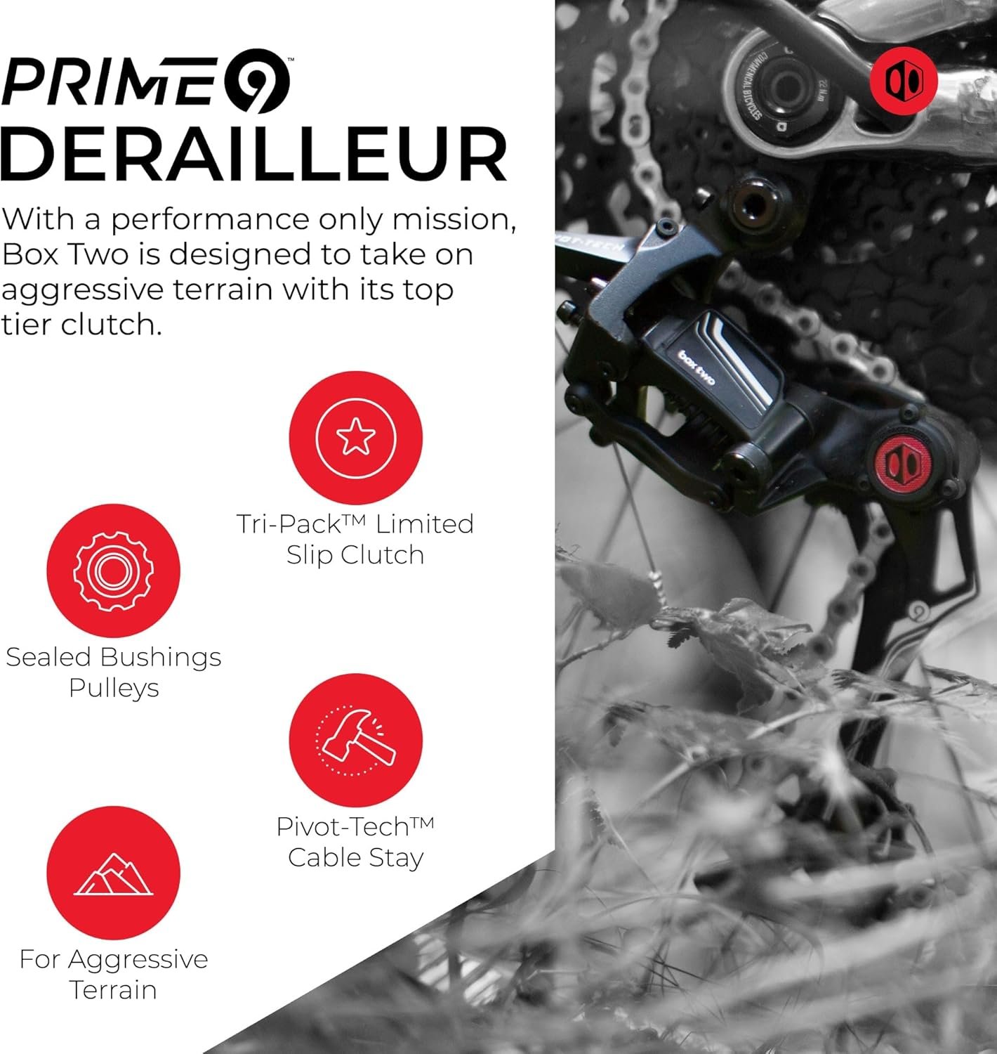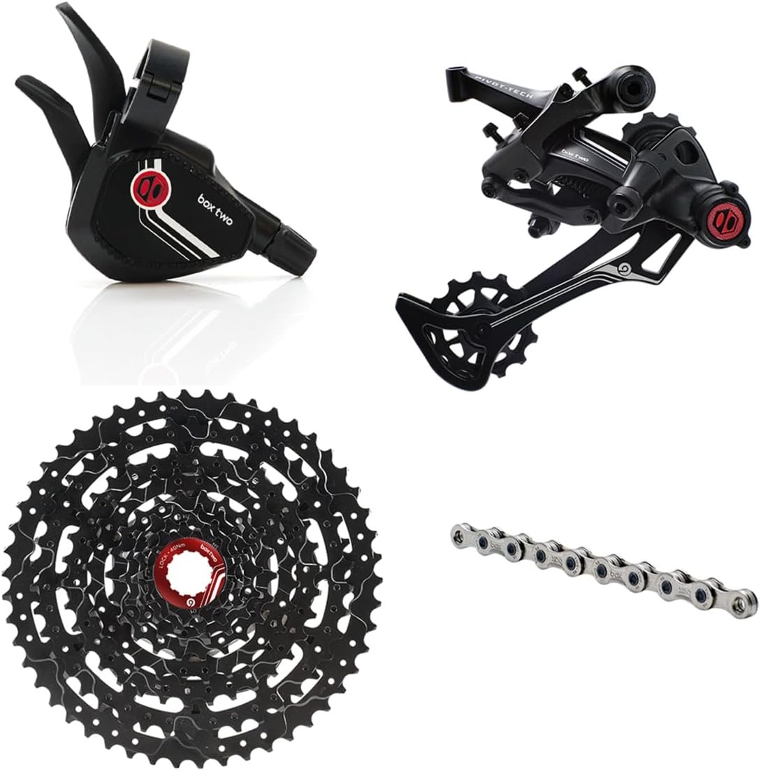 ✅INCLUDED COMPONENTS: Maximize your biking adventure with the Box Two Prime 9 Series – the complete powerhouse drivetrain. Included are Box Two Prime 9 Single Shift Shifter, Box Two Prime 9 X-Wide Rear Derailleur, Box Two Prime 9 12-50T E-Bike Cassette, Box Two Prime 9 126L Chain Nickel, and Box One Shift Cable & Housing Kit.