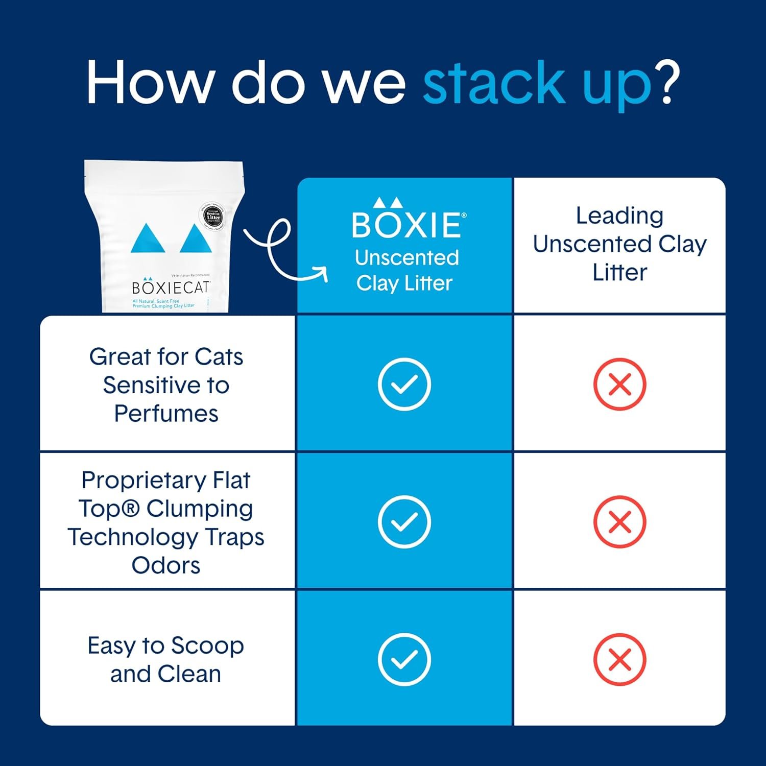 Boxie® Unscented 30 Day Odour Control Clumping Clay Cat & Kitty Litter 16 lb, 99.9% Dust-Free, Hard Flat Top® Clumps, No Fragrances No Fillers, Long-Lasting, Easy to Scoop