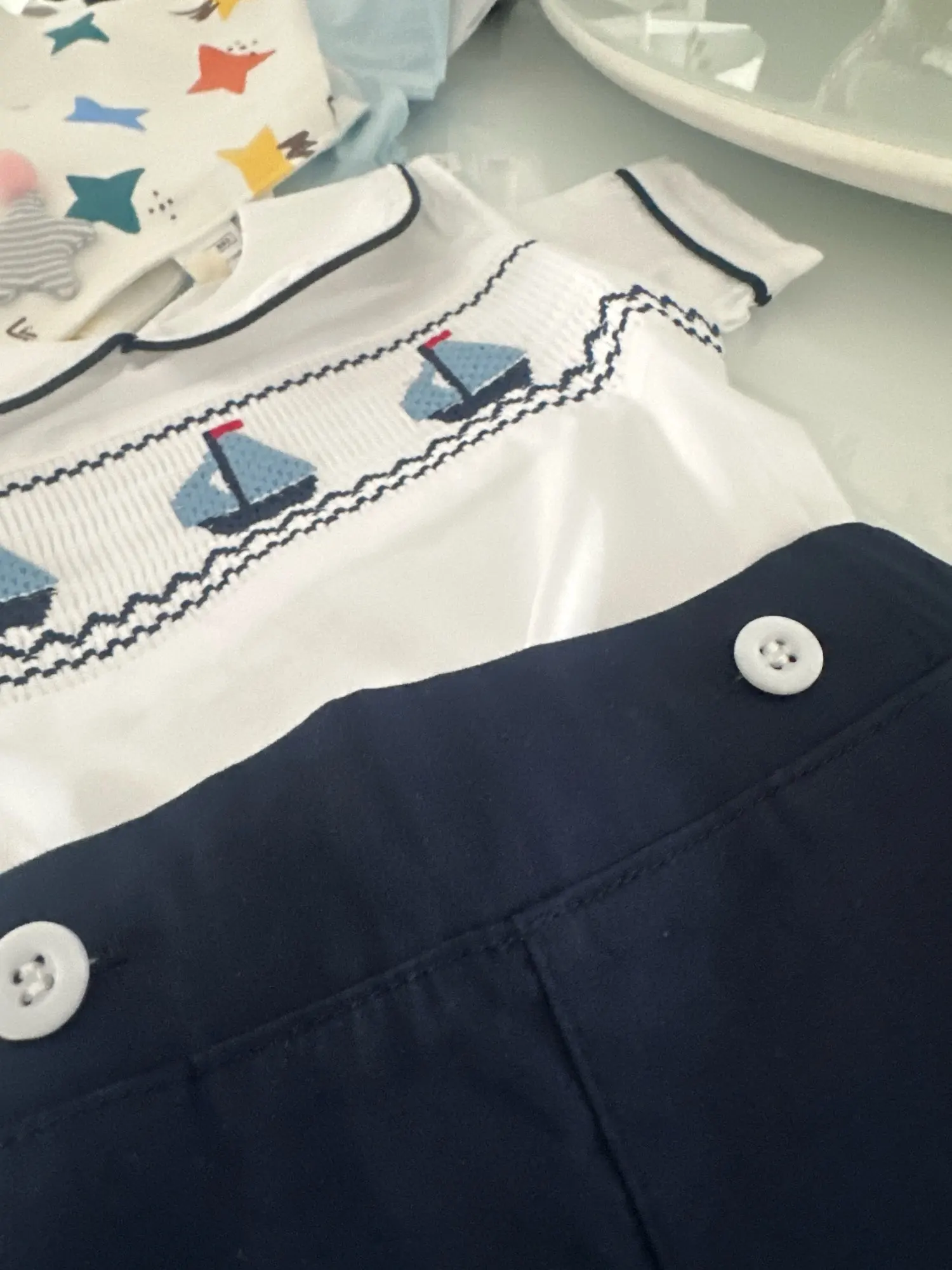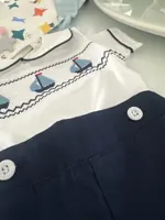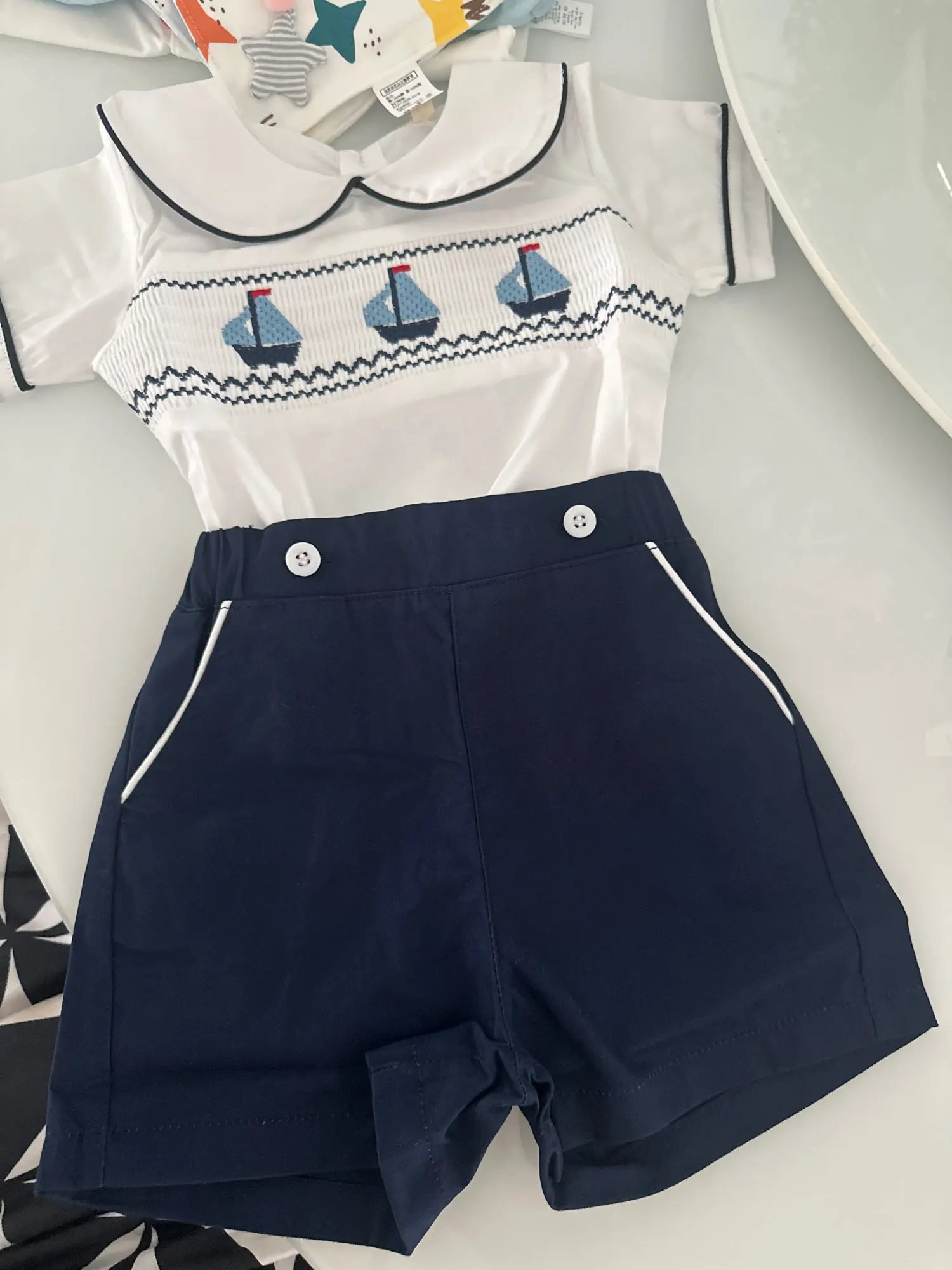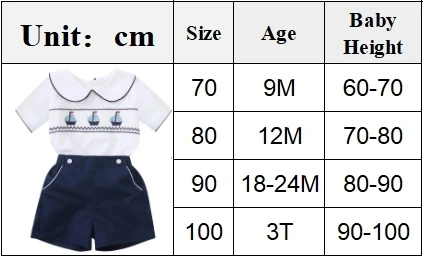 3 reviews for Boys Boat Smocked T-shirt with Peter Pan Collar 2PCS Sets Infant Summer Short Sleeve Toddler 1 2 3 Years Daily Fashion Clothes
