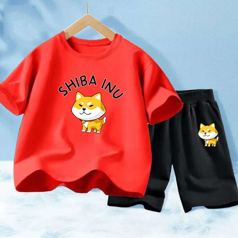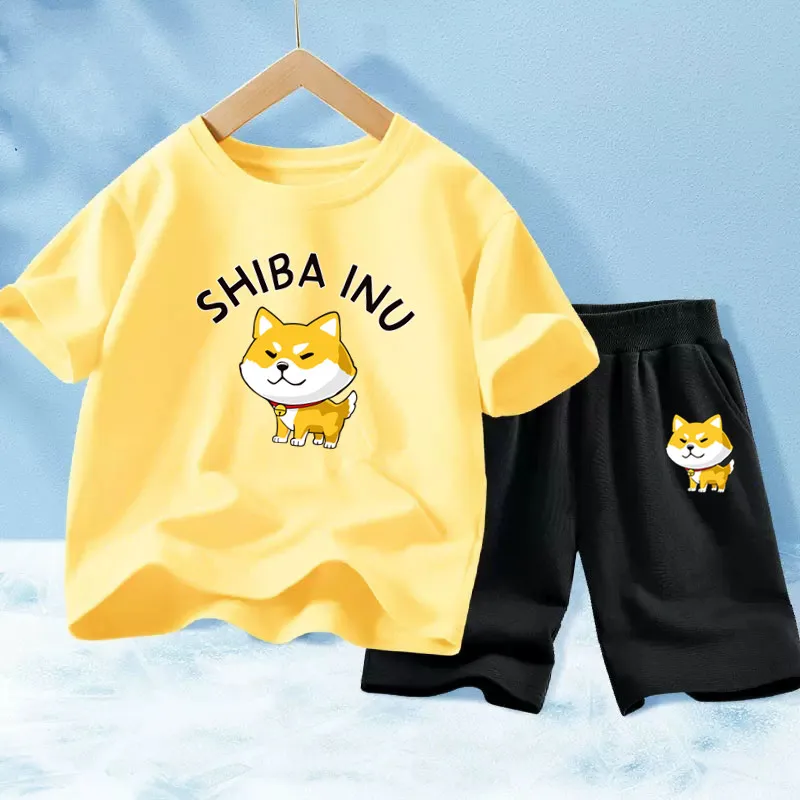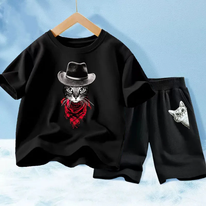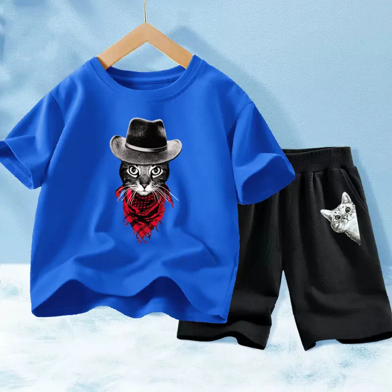 Boys Cartoon Tracksuits Short Sleeve Cool Cat/Dog Print Tshirt+Shorts Two Piece Set Toddler Fashion Summer Clothes Sets
