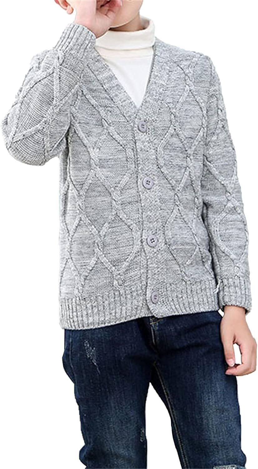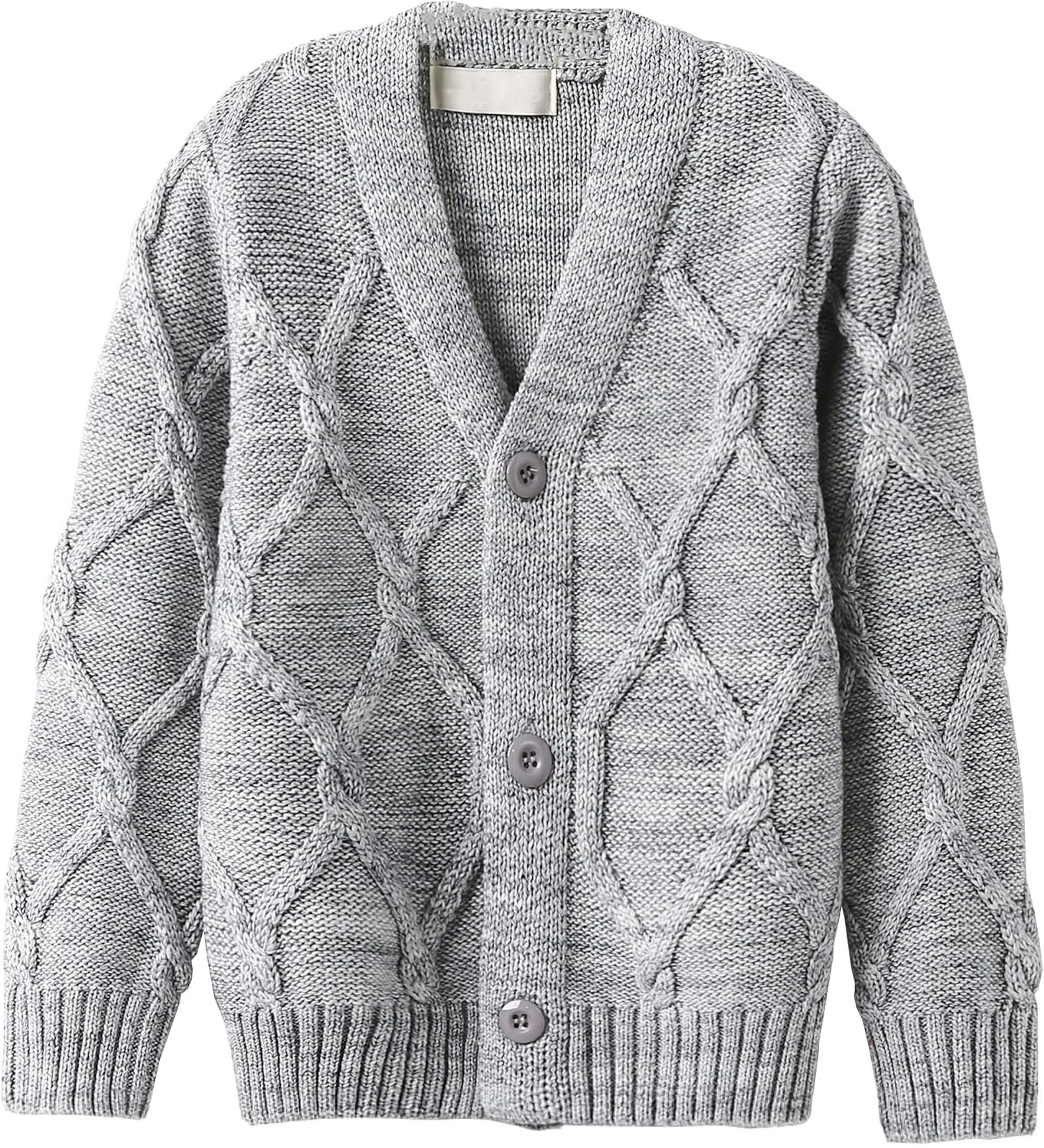 Boys’ Solid V-Neck Long Sleeve Diamond Knit Cardigan Sweaters, 2-10 Years