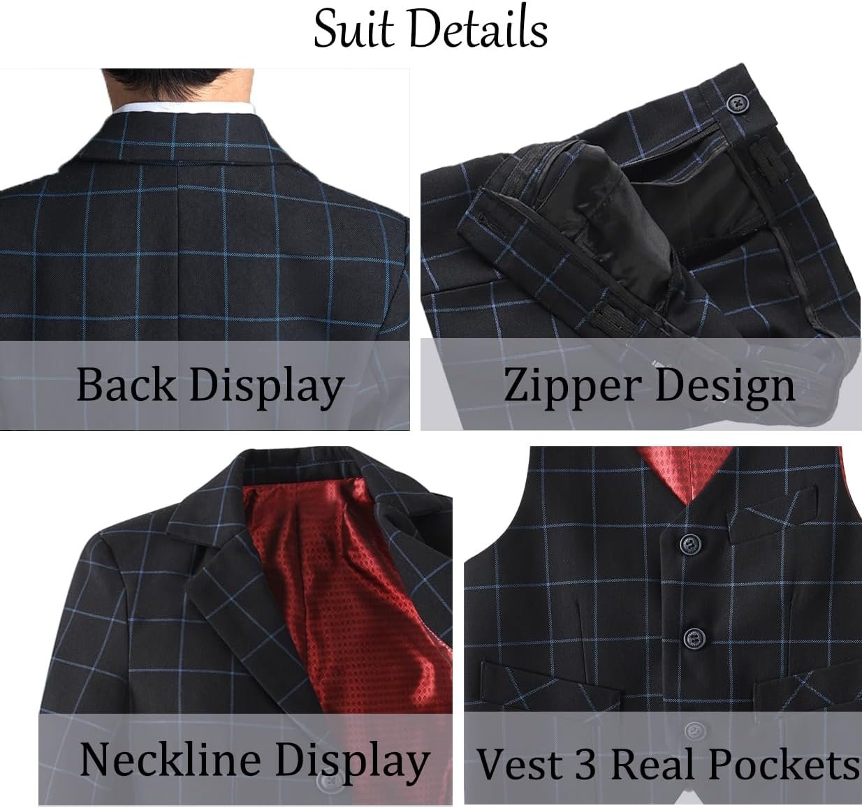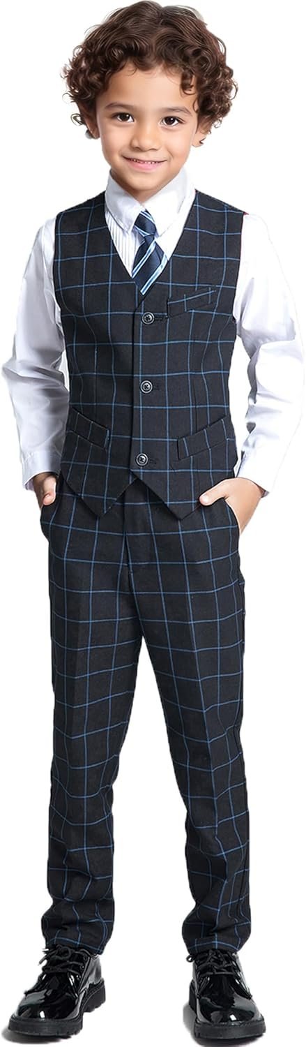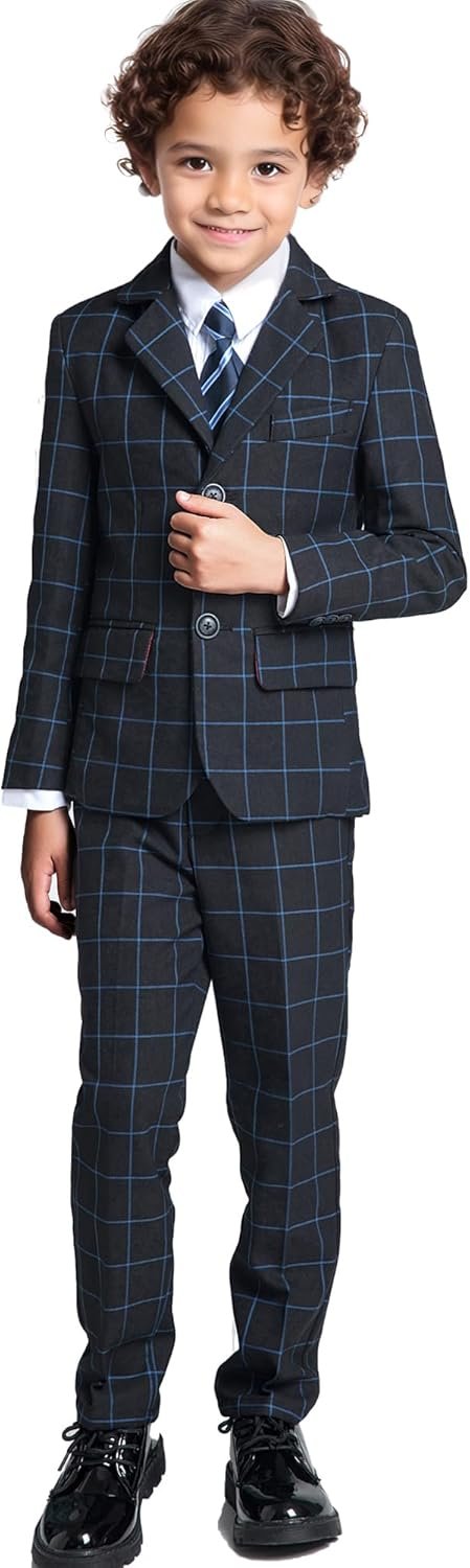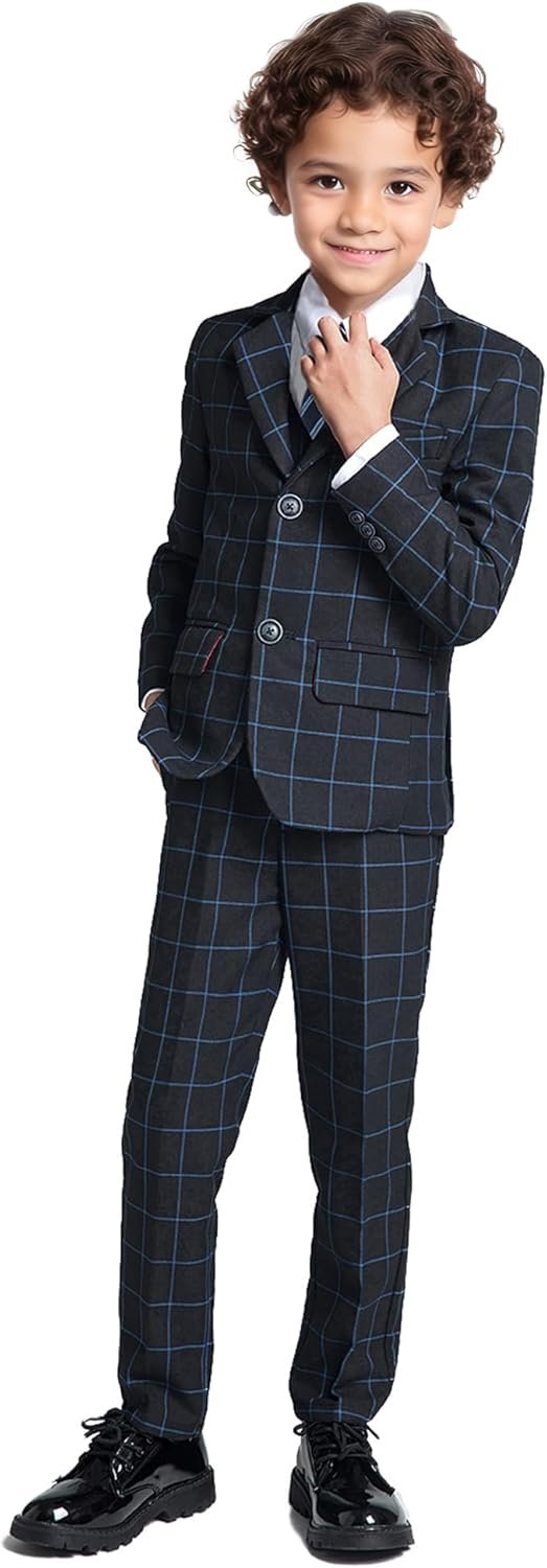 Boys Suit Formal Slim Fit Suit Set 5 Piece Kids Boys Tuxedo Plaid Suits Toddler Wedding Party Outfit