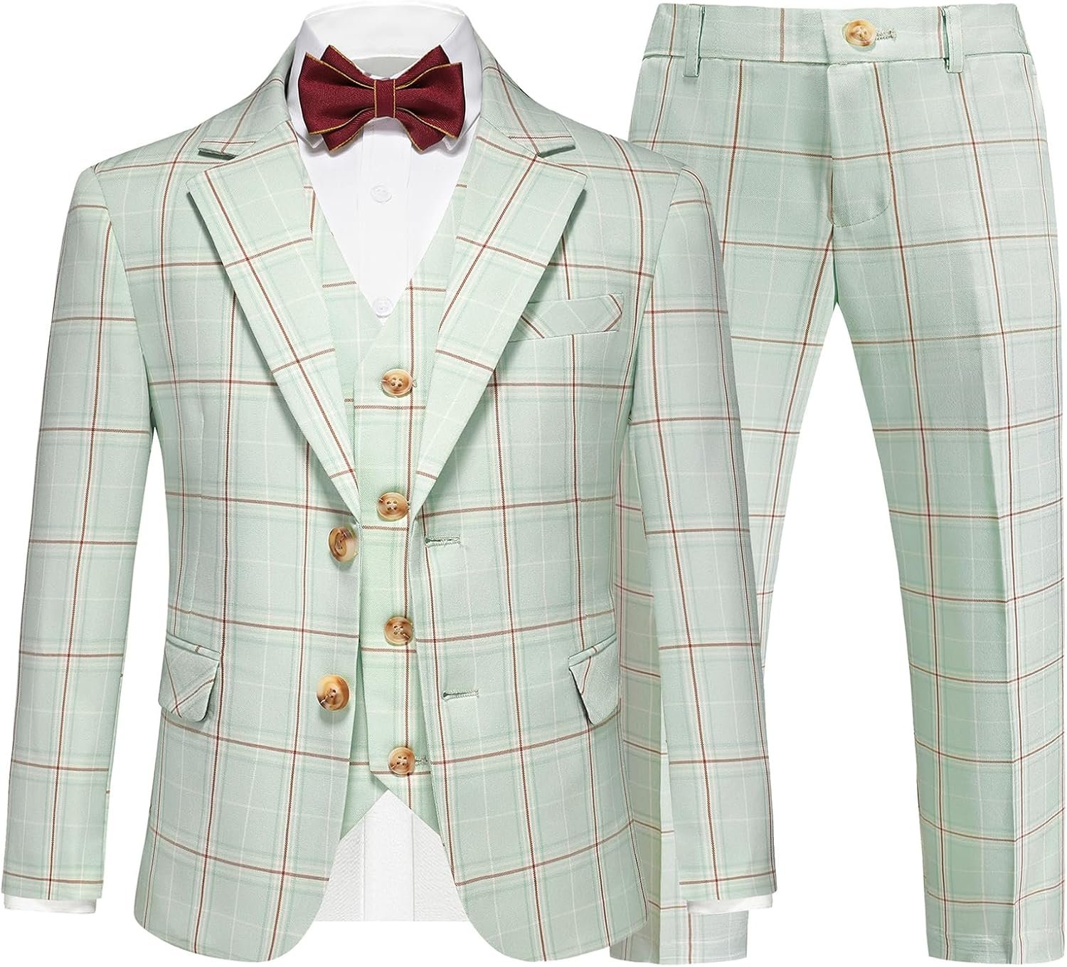 Boys Tuxedo Suits Size 4-16 Plaid Stripe Dress Suit Jacket for Boys 3 Piece Tweed Pinstripe Slim Fit Suits Set