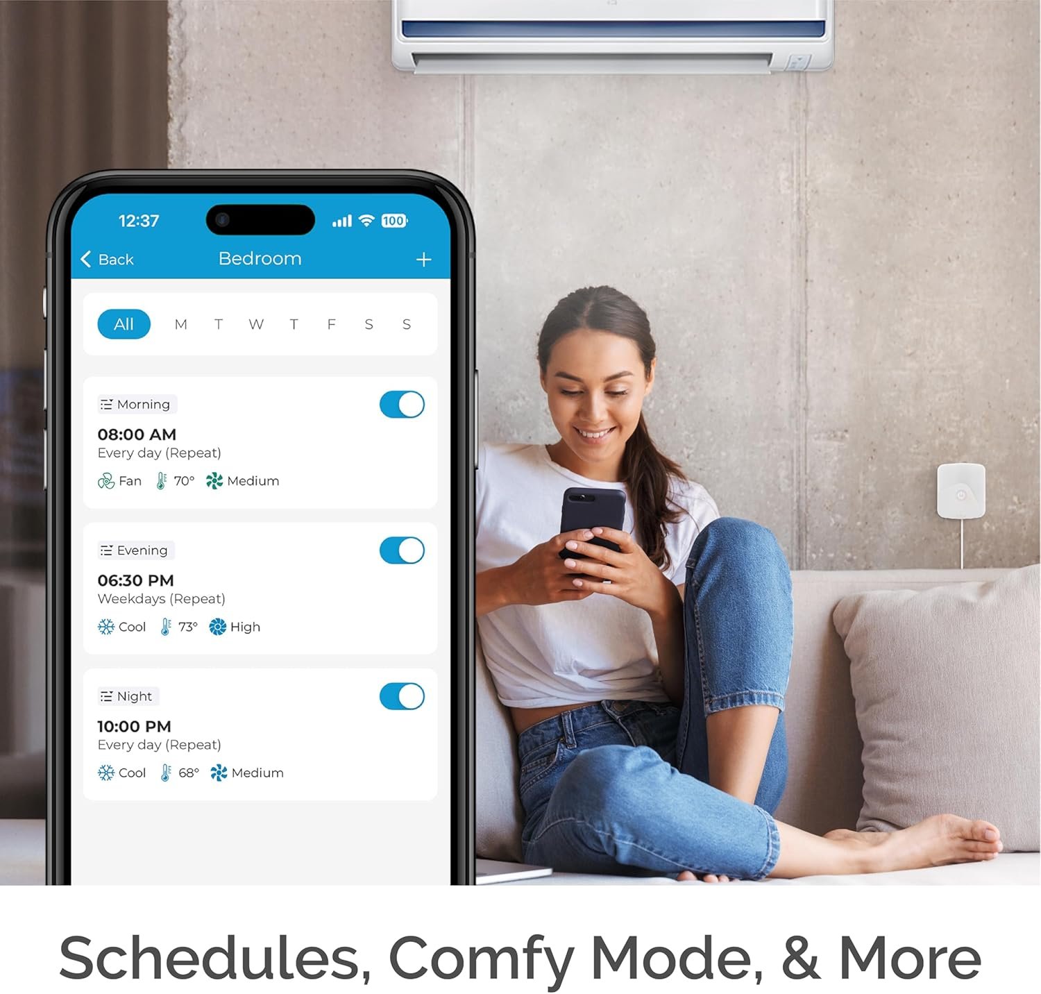 Breez Eco | Smart AC Controller for Mini Split, Window, Portable ACS | WiFi, Alexa, Google, Siri Shortcuts, SmartThings, IFTTT, Free App, NO Subscriptions | Schedules, Geofencing, Comfy (White)