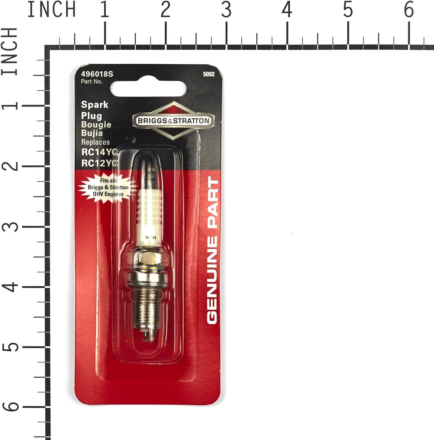 Display pack of 1 (496018S) spark plug. This OEM part ensures proper fit and performance to maintain the life of your Briggs & Stratton engine.
