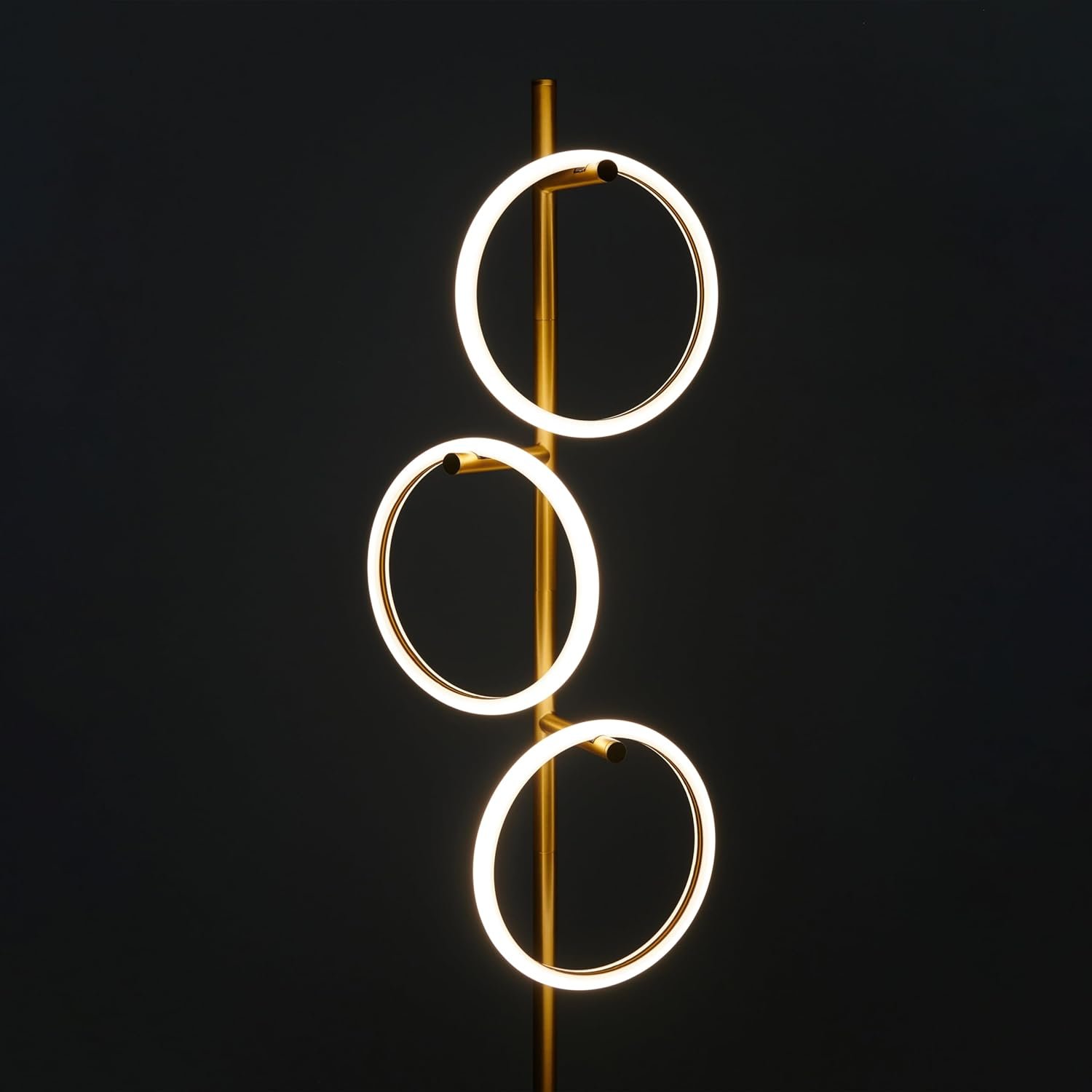 Contemporary Tree Floor Lamp: The Brightech Saturn standing lamp uses an original design to provide opulence to your bedroom, living room, or office. With a gold/brass finish and circular hanging lights, you’d be hard-pressed to find this design anywhere else. The lights mesh with the simple stem and help this lamp for living rooms work with contemporary, mid-century, modern, and Asian decorative styles. Post-modern architectural lines help this tall lamp work wonderfully in any configuration.