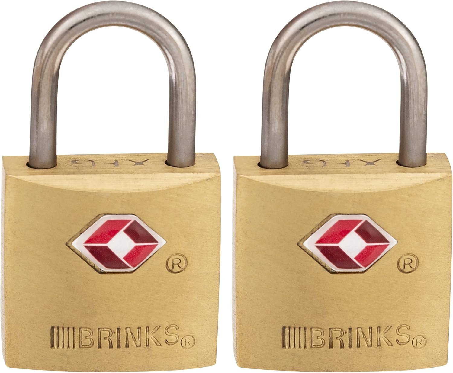 BRINKS – 22mm TSA Approved Solid Brass Keyed Travel Padlock, 2-Pack – Chrome Plated with Hardened Steel Shackle, TSA Approved Lock for Travel and Inspection