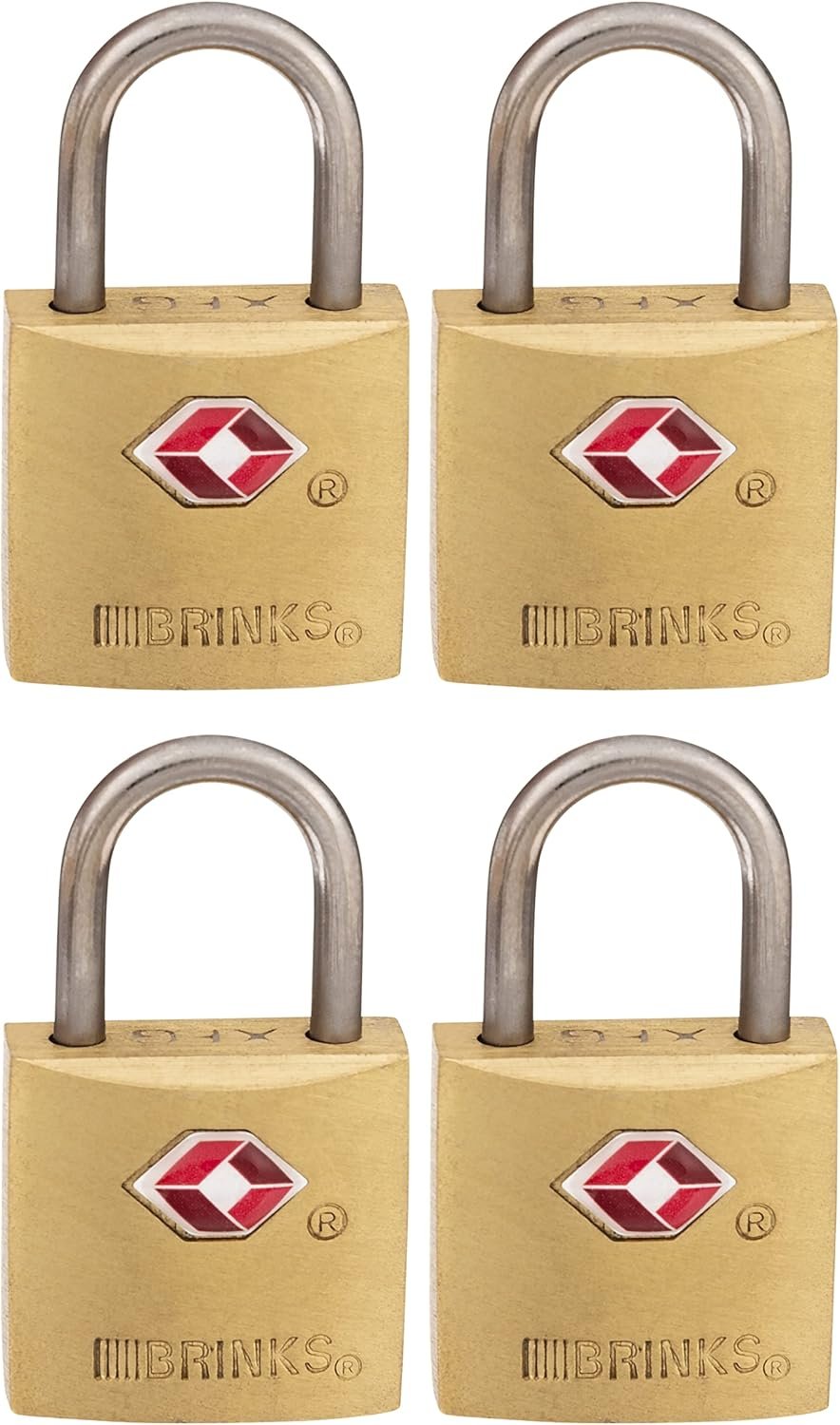 BRINKS TSA Approved Padlock, 22mm Solid Brass, Chrome-Plated with Hardened Steel Shackle, TSA Locks for Luggage, 4-Pack