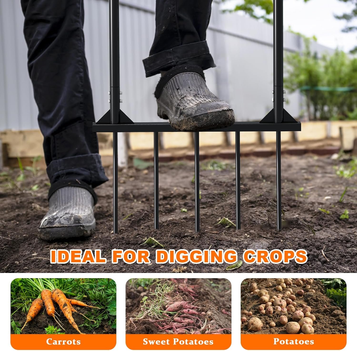 WIDELY USED: This wide fork gardening tool can be used as a potato fork, barn rake, bedding fork, etc., ideal for gardens, vegetable plots, farmland, orchards and lawns. Easy to use for novice gardeners and professionals alike