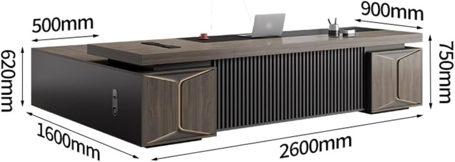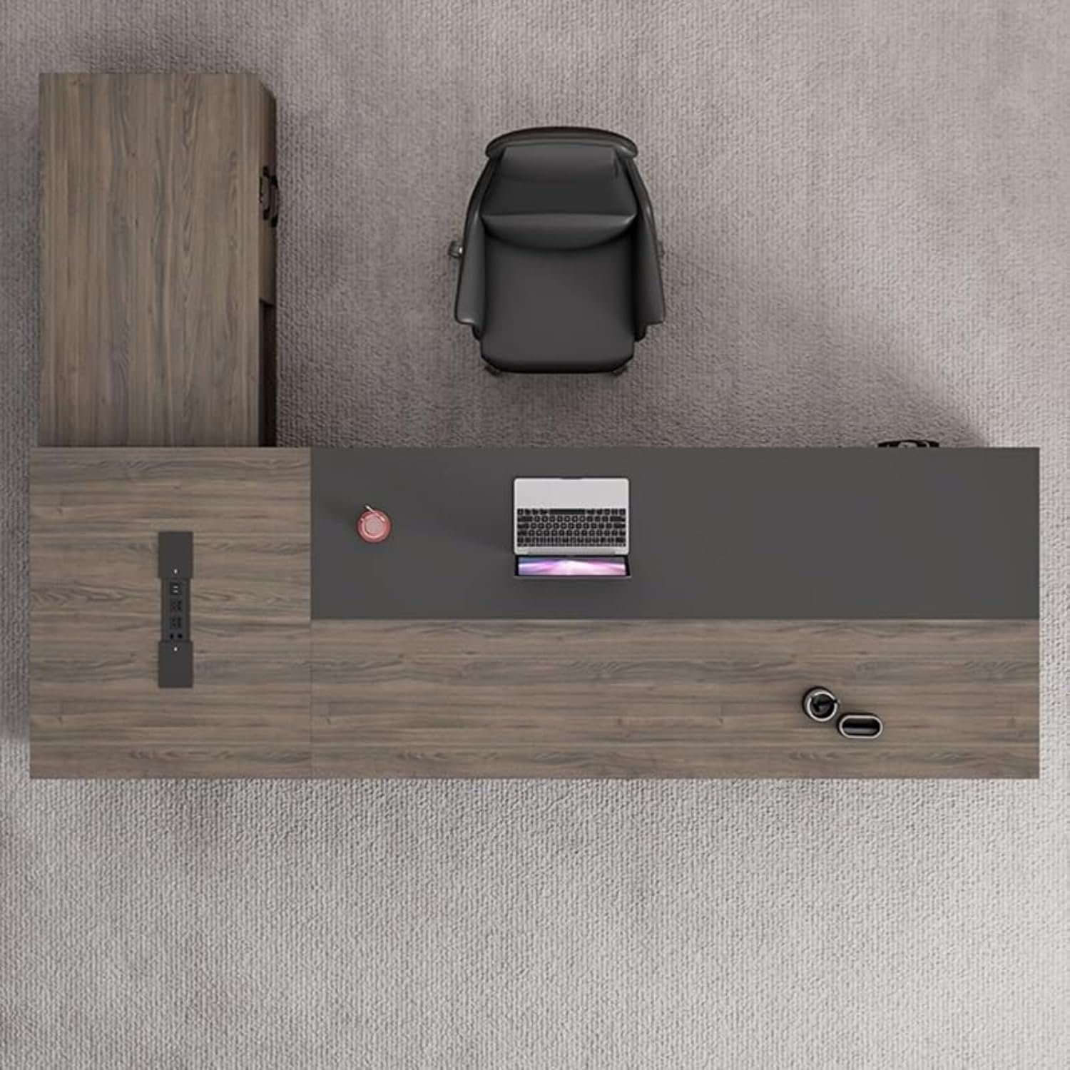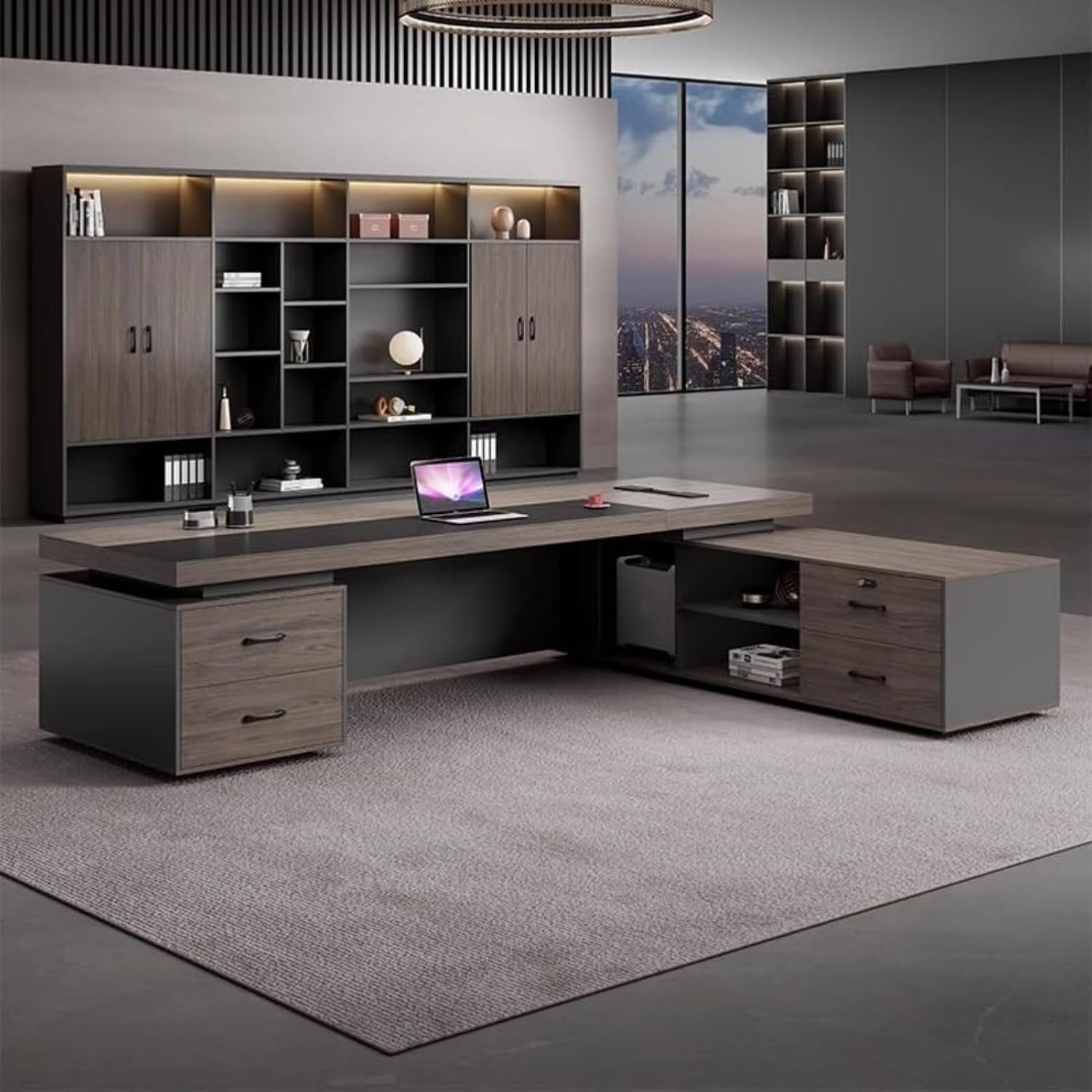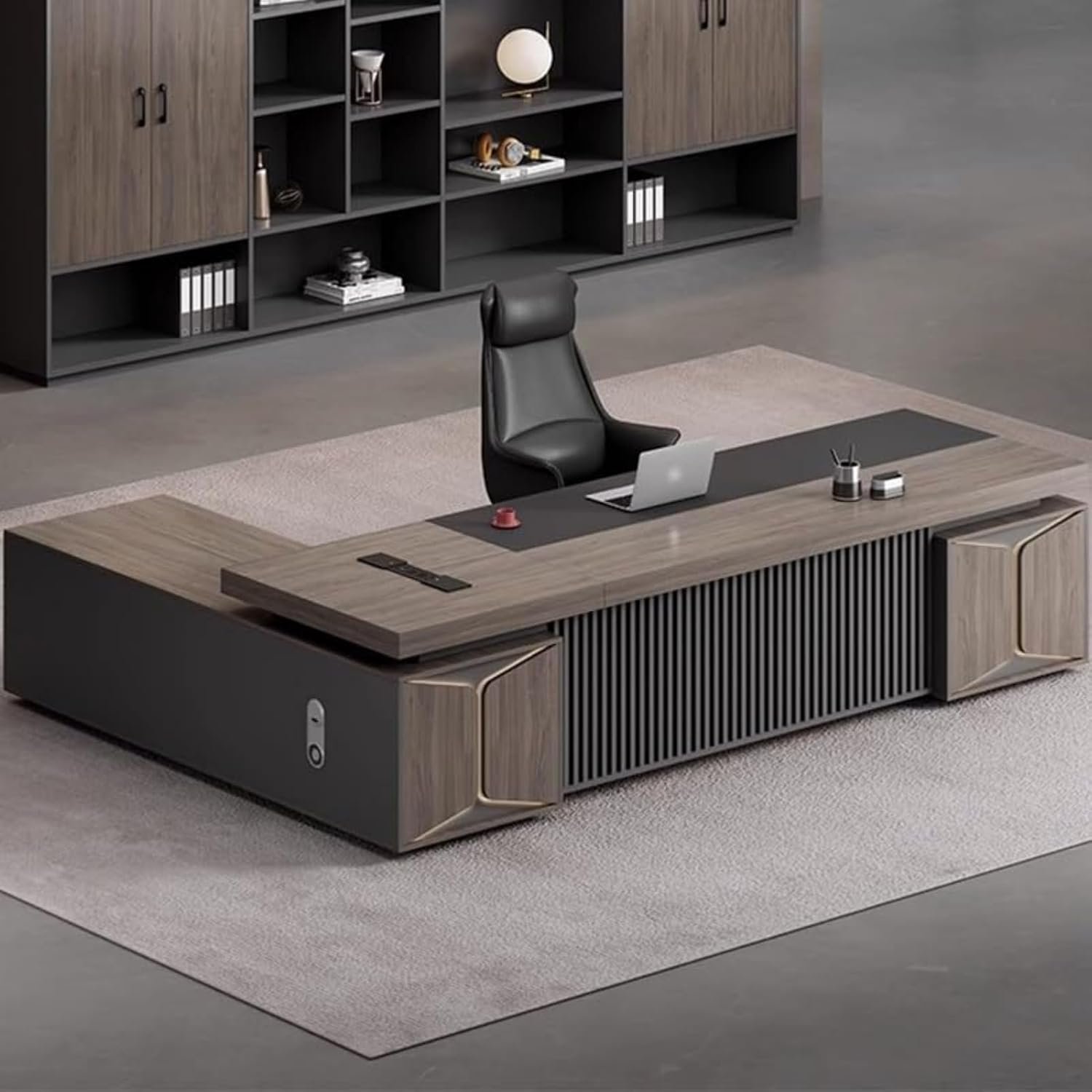 Brown Business Computer Desk L-Shaped Executive Office Desk with Lateral Cabinet Gaming Study Table Gaming Table Workstation for CEO Boss