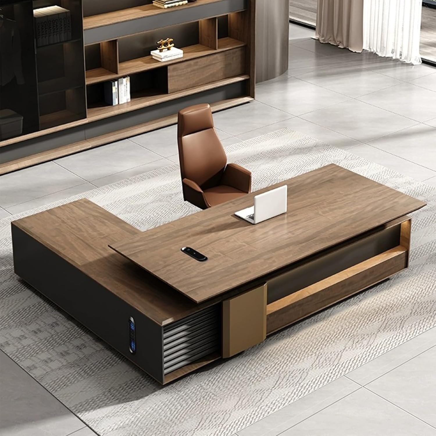 Sleek and Professional Design: Designed for high-level professionals, this boss desk adds an elegant touch to any office. The modern, sleek design of this business furniture enhances your office decor while providing all the functionality you need for a productive day.