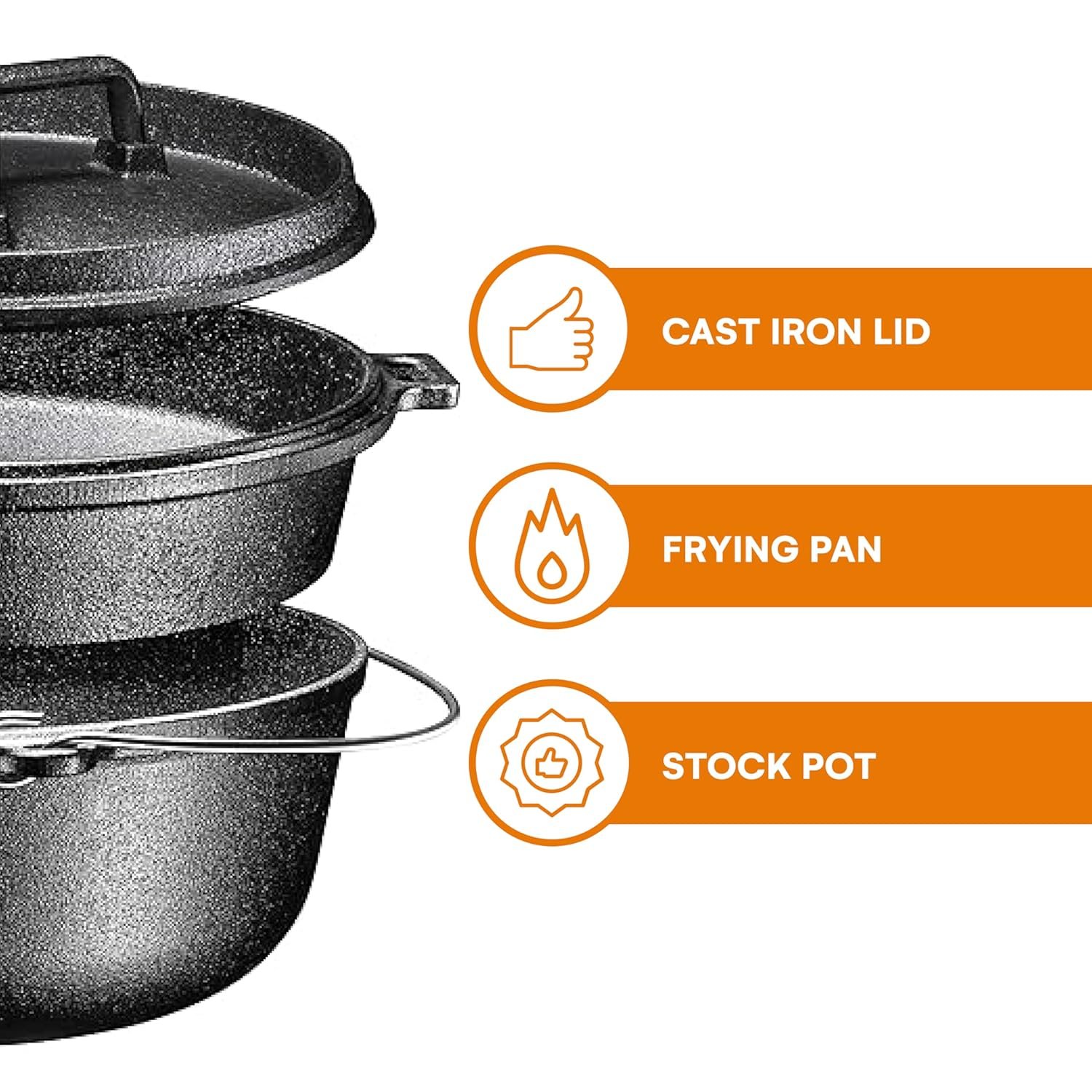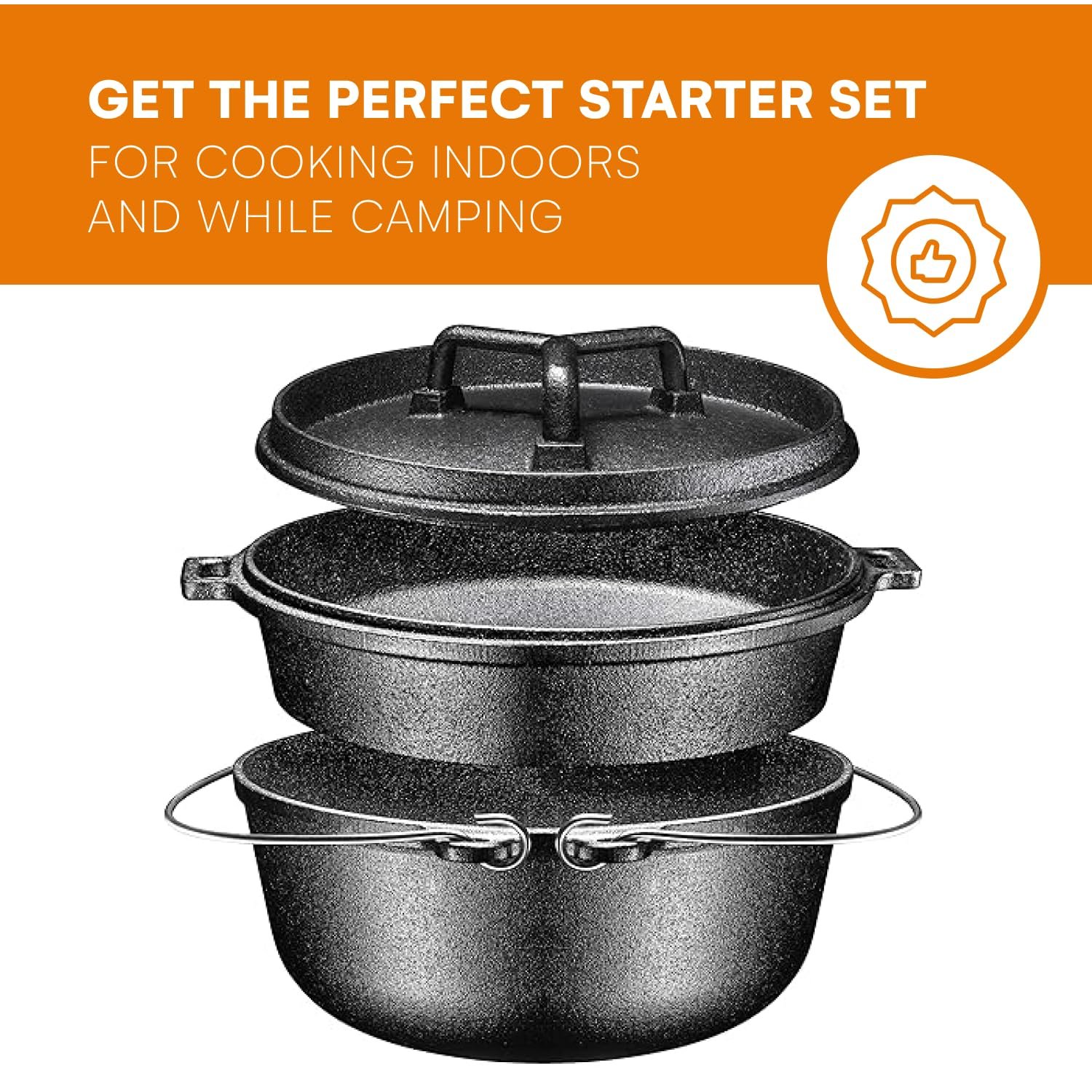 Versatile for Indoor or Outdoor: Ideal as kitchen cookware sets for home chefs or as cast iron cookware set for camping and outdoor events; suitable for various cooktops including induction and oven