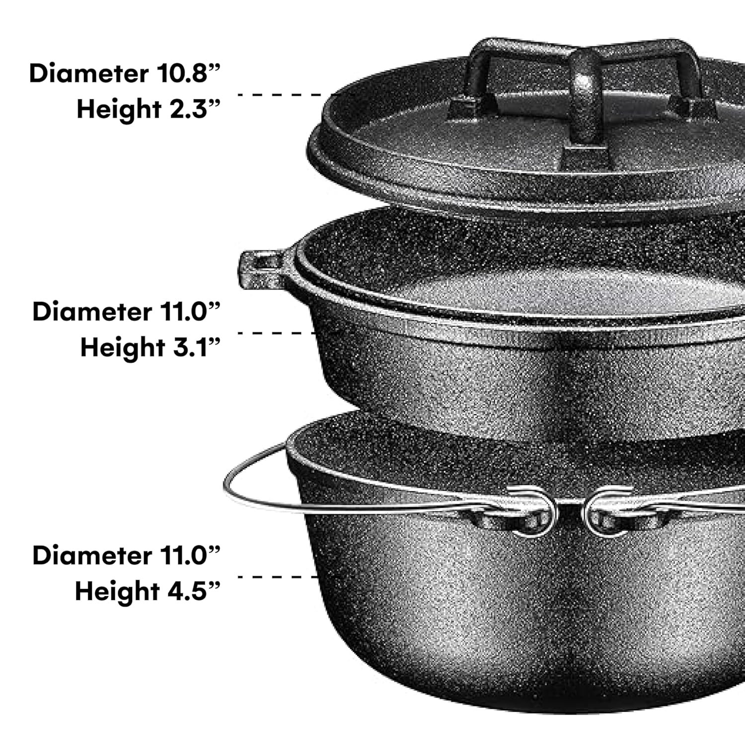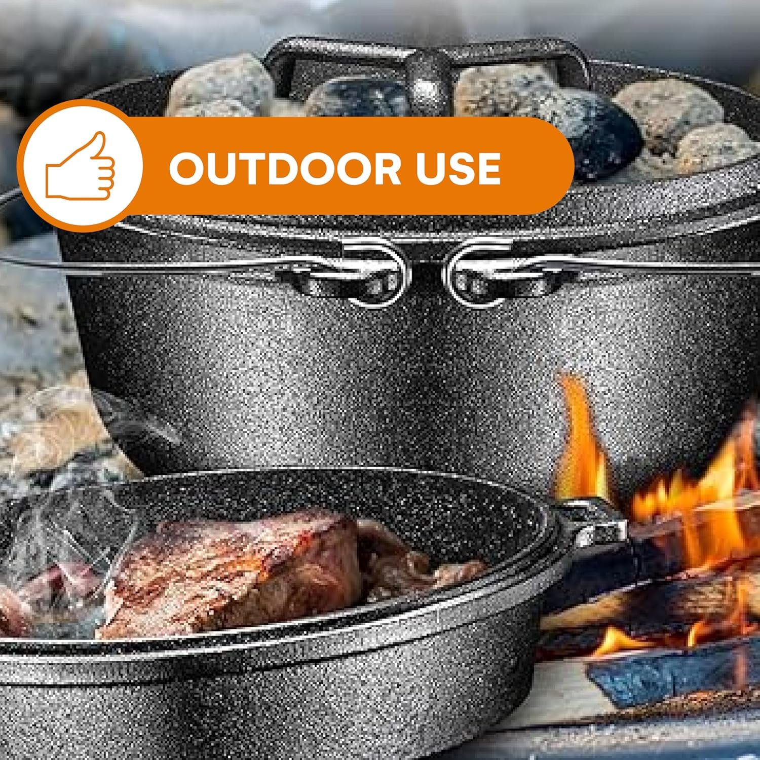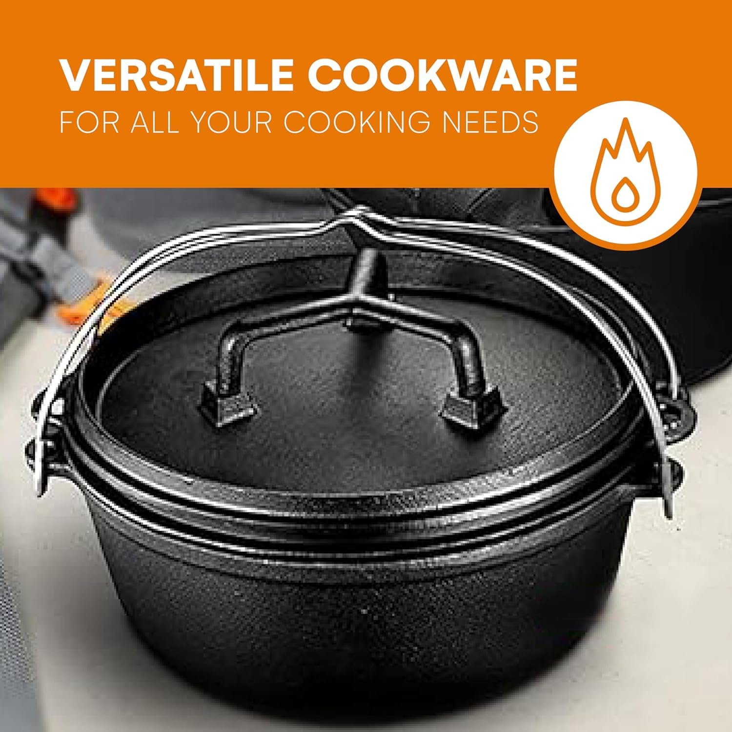 Durable and Long-Lasting: Built to withstand frequent use, the cast iron construction ensures even heat distribution and durability for long-term use whether at home or as dutch oven for camping