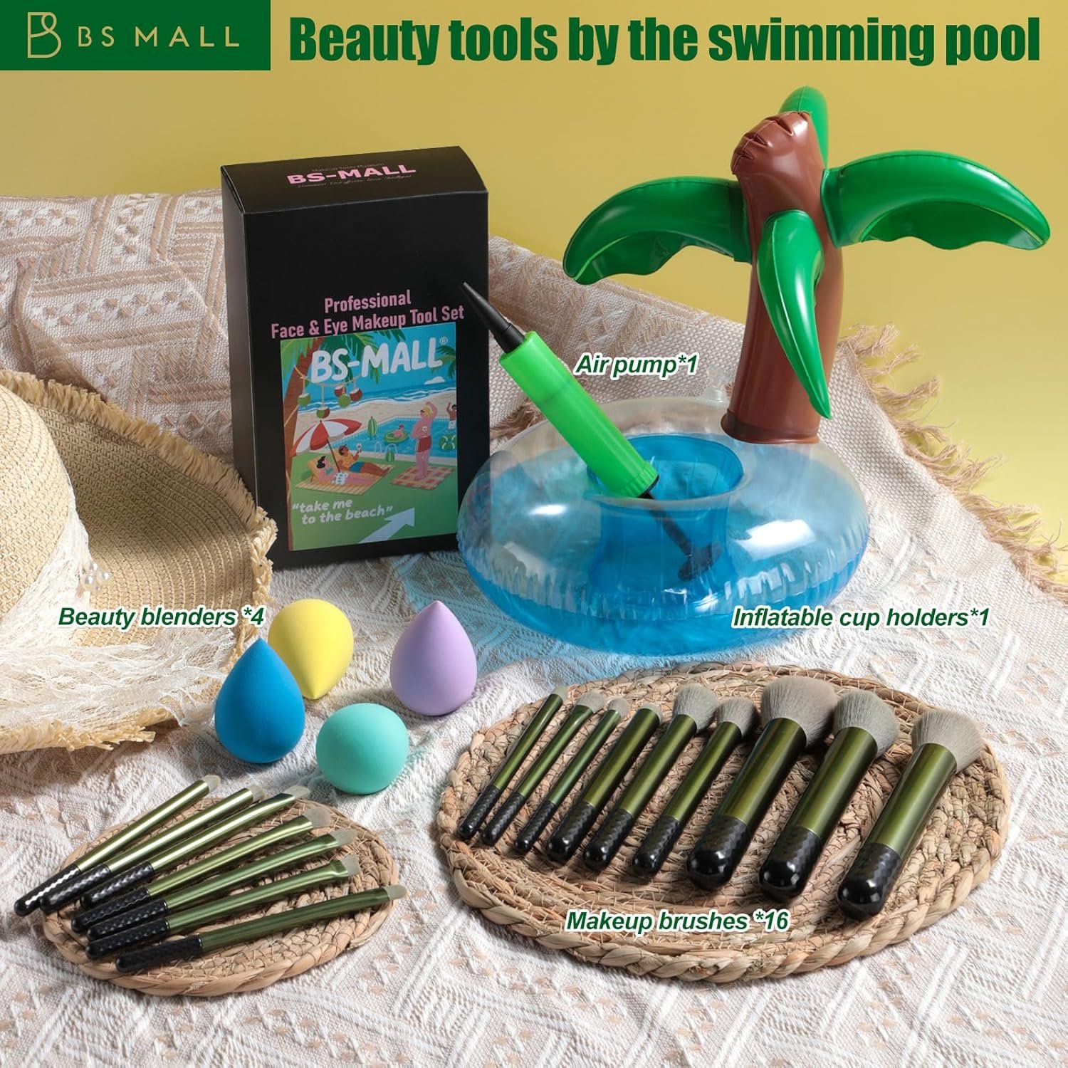 💎Stylish Storage Solution: Comes with a unique pool float cup holder, offering an innovative and fun way to store your brushes while keeping them easily accessible.