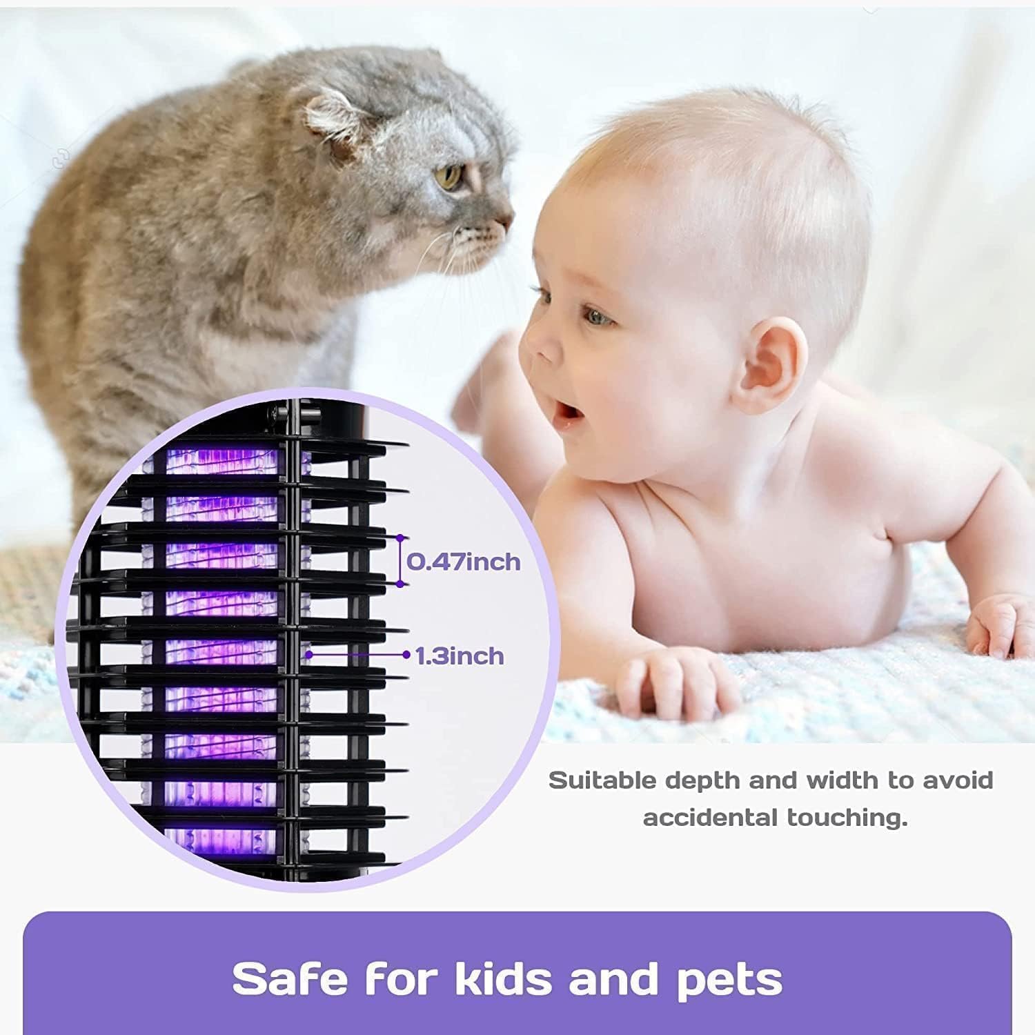 HIGH-EFFICIENCY INSTANT ELECTRIC SHOCK TECH: Experience enhanced efficiency with our upgraded electric grid, capable of delivering a powerful electric shock in just 0.01 seconds. This quick action swiftly immobilizes and eliminates a variety of insects, including mosquitoes, flies, moths, fruit flies, and culex, ensuring these pesky flyers have no chance to escape.