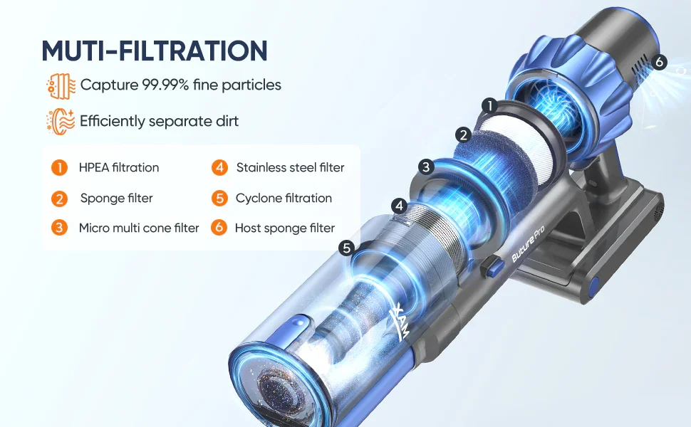 7 reviews for BUTURE 500W 48KPA Handheld Wireless Cordless Cleaner Vacuum Up to 55 Mins Runtime Anti-Winding Brush and 1.5L Large Dust Cup