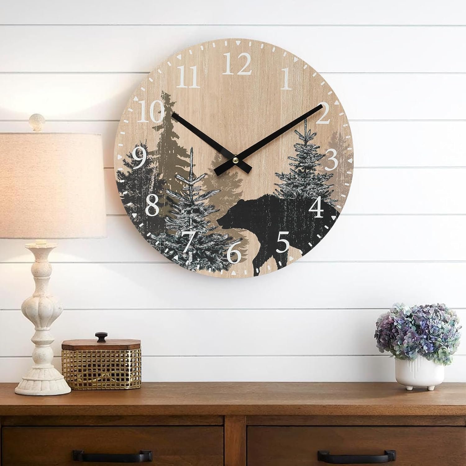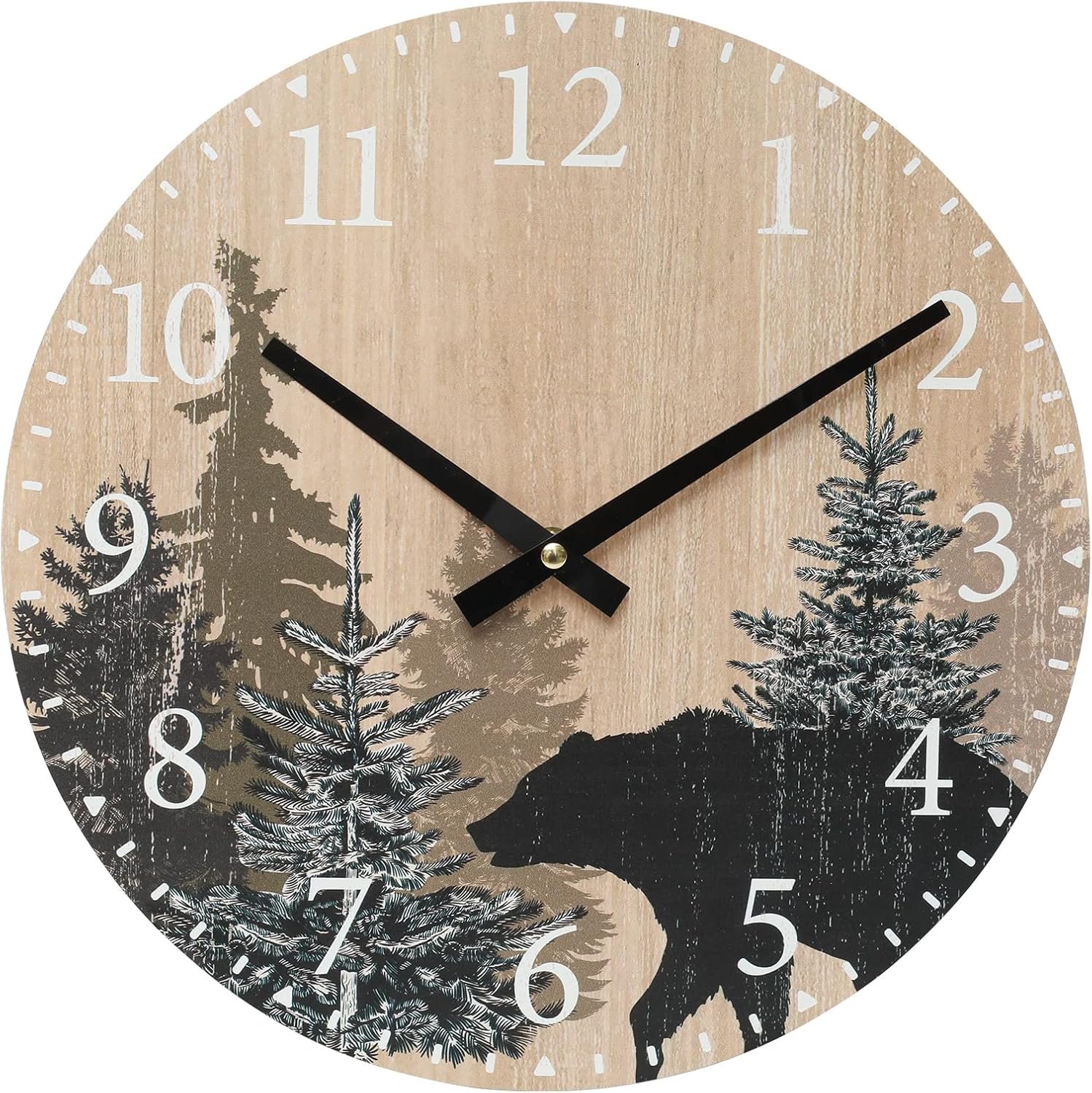 [NICE CABIN DECOR] – A perfect blend of rustic and modern, this wall clock features a simple and unique design with a cute bear in the forest. Add a touch of warmth to your cabin decor or rustic theme home interior.