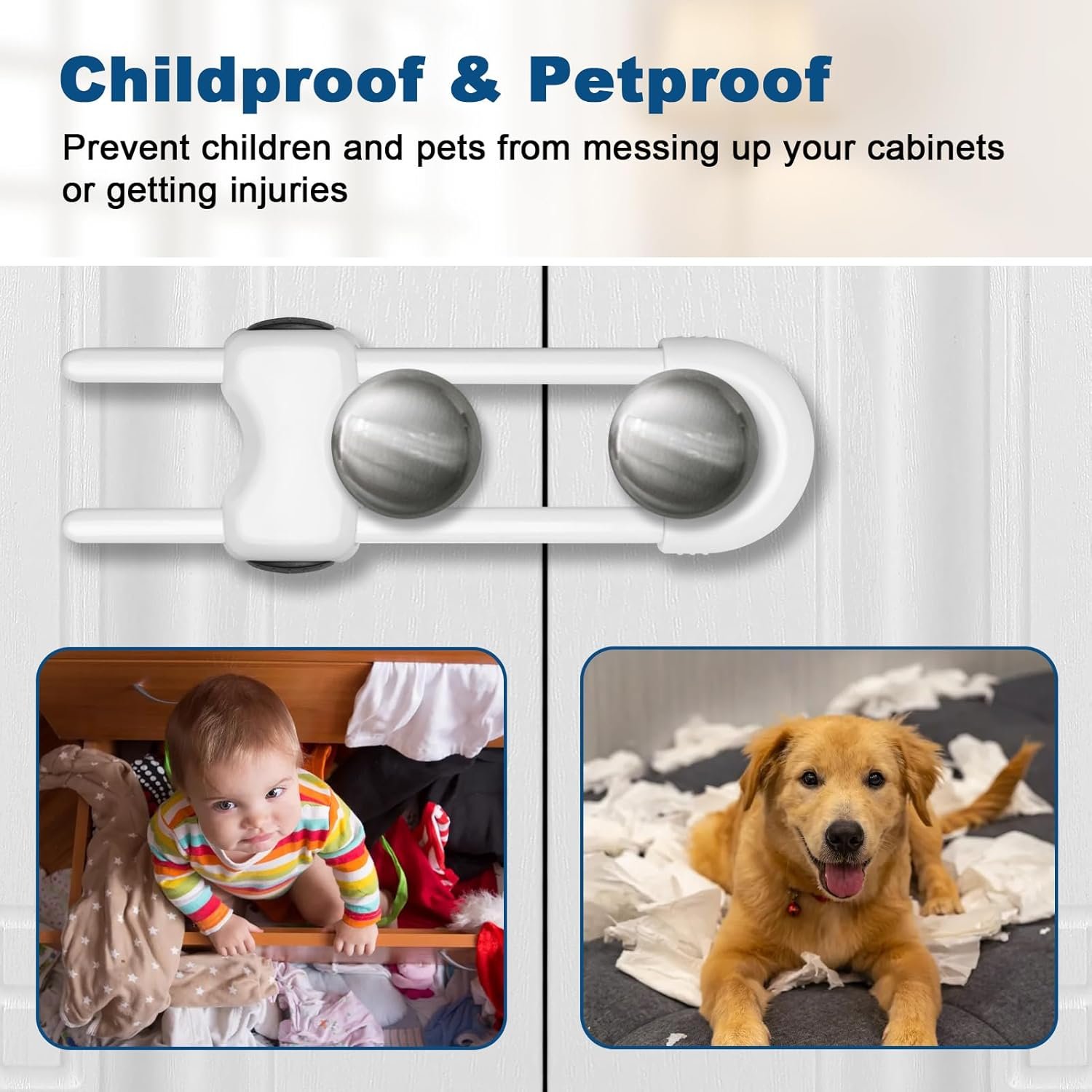 Tool-free Installation: Child proof cabinet latches can be easily put on the cupboards and drawers handles.