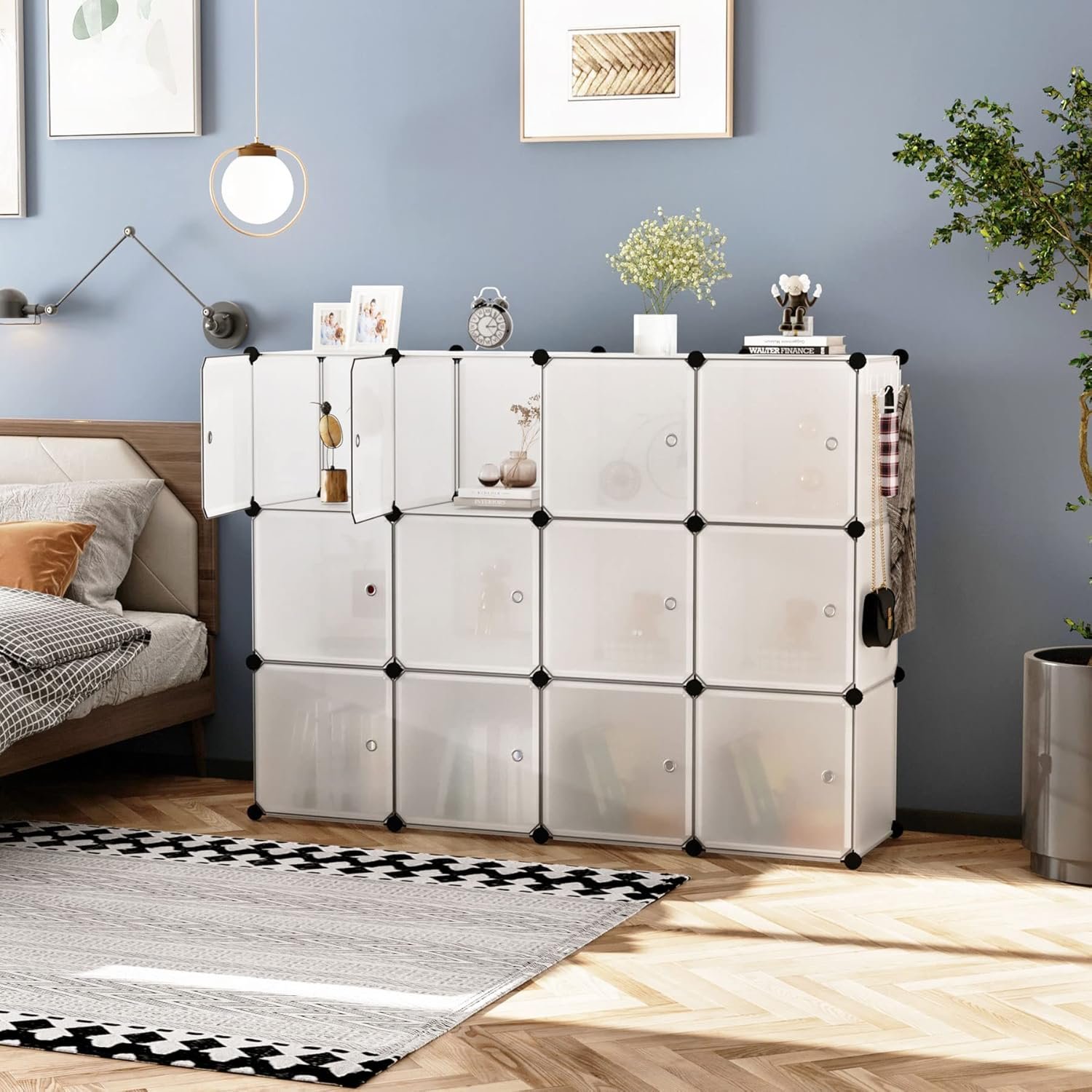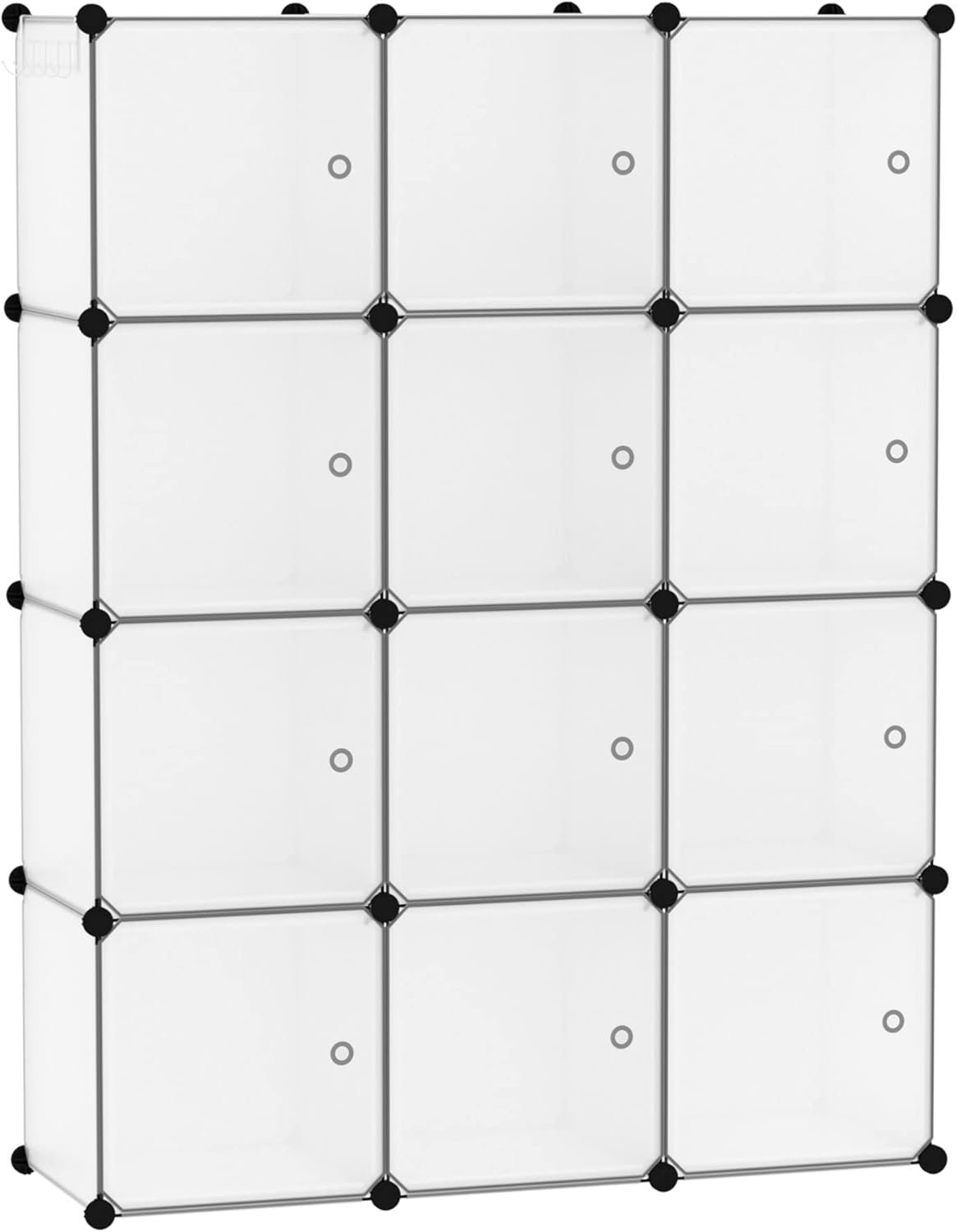 C&AHOME Cube Storage Organizer with Doors, 12-Cube Shelves, Closet Cabinet, DIY Plastic Modular Bookshelf Ideal for Bedroom, Living Room, 36.6”L x 12.4”W x 48.4”H Transparent White USHS3012W-DOOR
