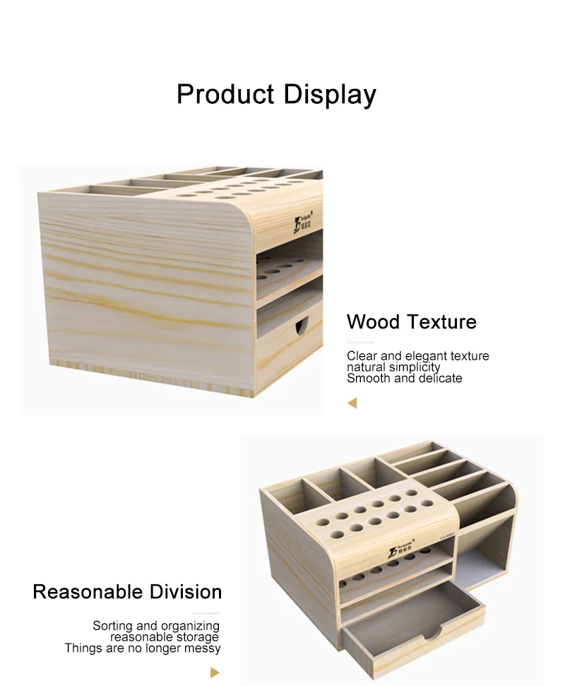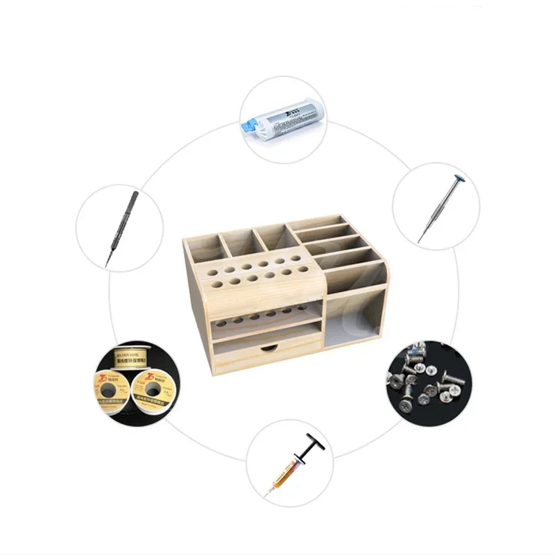 HZY Wooden Storage Box Screwdriver Tweezers Holder Mobile Phone Repair Desktop Reception Tool Parts Box