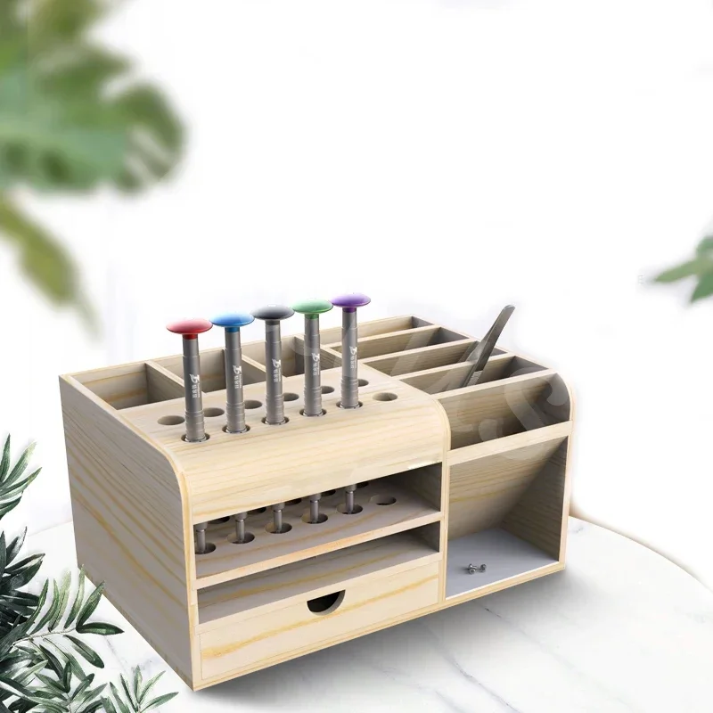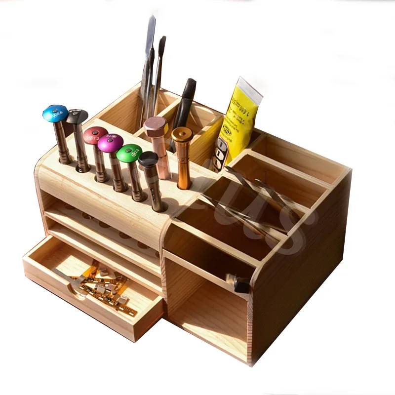 Caius Wooden Multifunctional Storage Box Screwdriver Tweezers Insert Box Mobile Phone Repair Desktop Reception Tool Parts Box