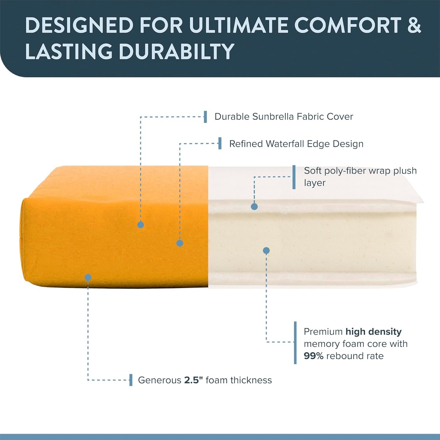 3.5″ thick Memory Foam fill offers a comfortable, supportive seating experience.