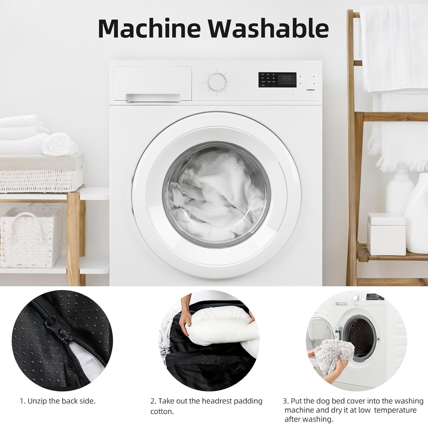 【Easy to Care】The washable dog bed has a zipper at the bottom, which can be easily removed. It can be hand-washed or machine-washed. Drying at low temperature after washing can make the surface fluffy.