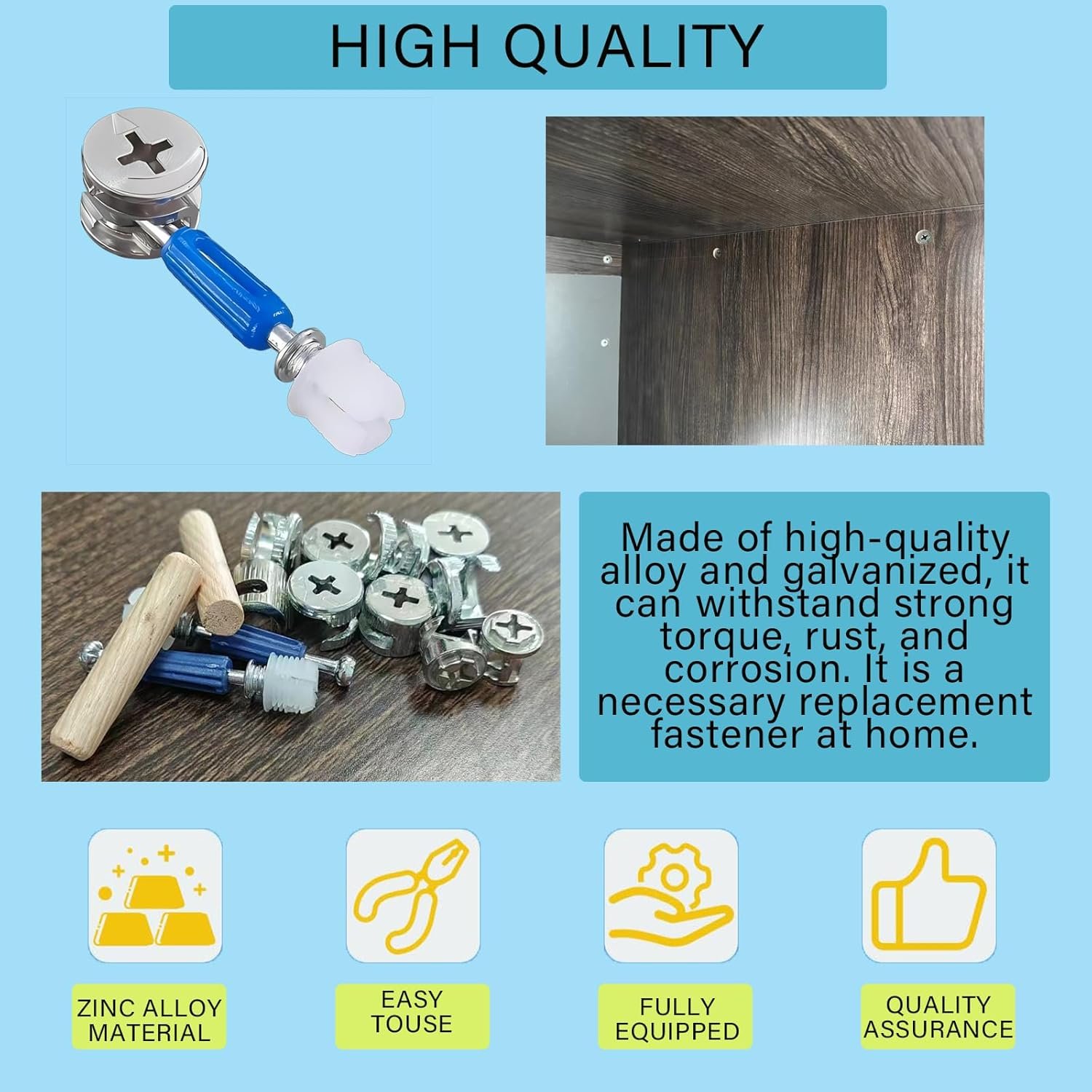 【High Quality Material】 The Furniture Fasteners are manufactured from high quality alloy steel, which is characterised by its superior quality, workmanship and resistance to wear, corrosion and rust. The resulting product is highly durable and resistant to breakage, providing a reliable fastening effect that will stand the test of time