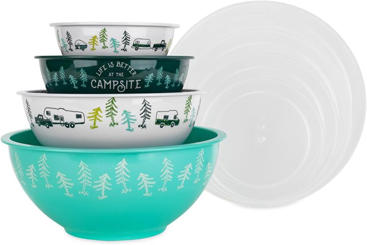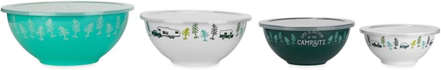 Camco Life is Better at The Campsite Nesting Bowl Set with Lids | Great for On-The-Go Lifestyles | Features (4) Durable Melamine Bowls with (4) Plastic Lids (53451)