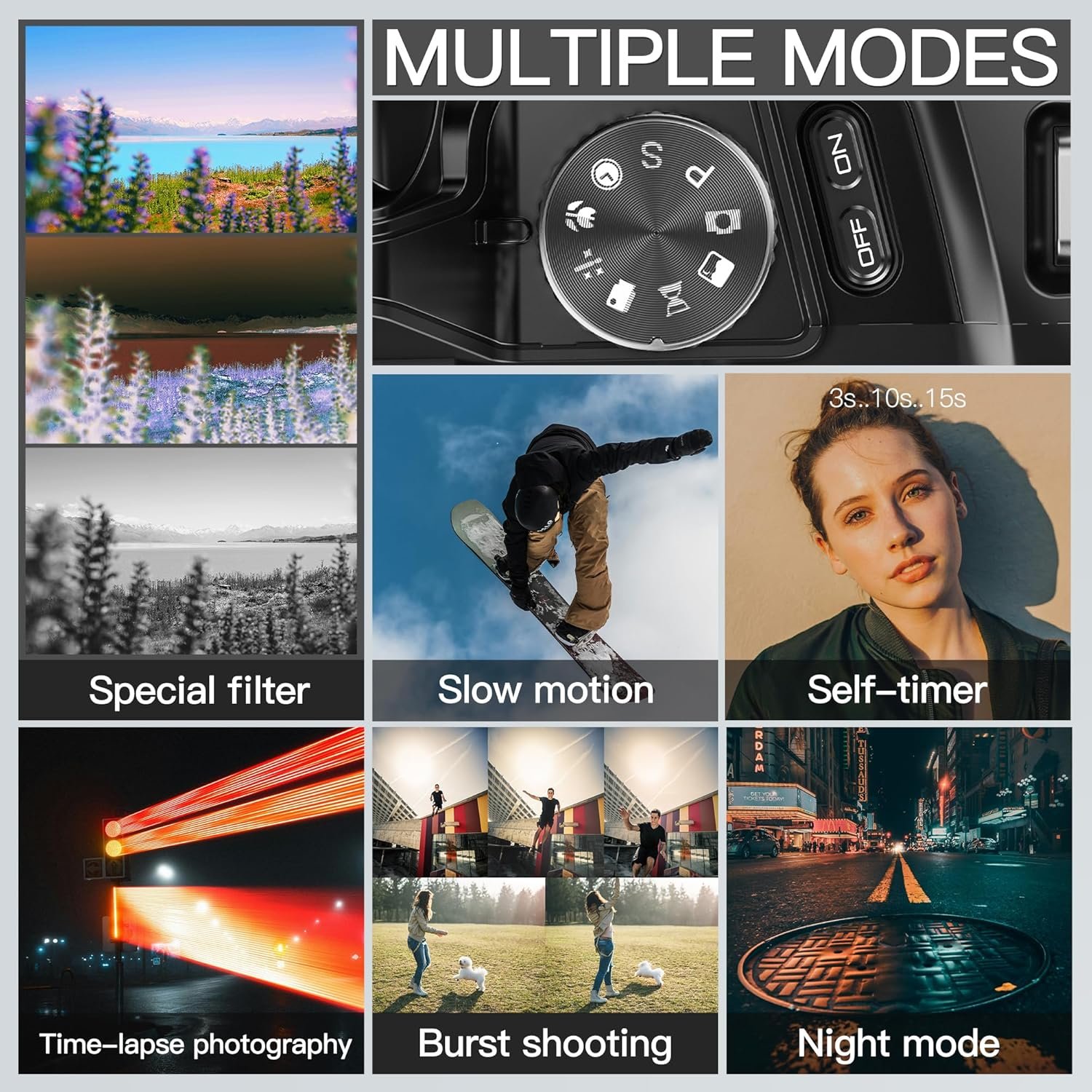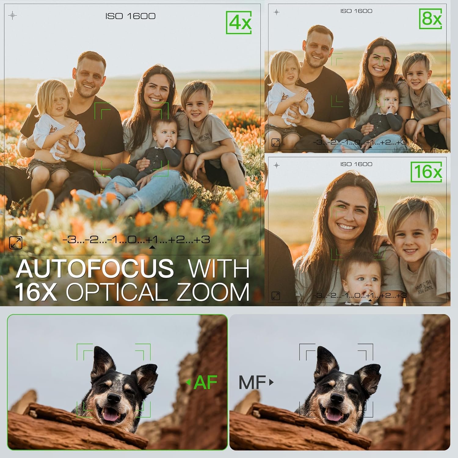 16x Optical Zoom &64MP Digital Camera: Our point shoot Digital cameras provide further integrated solutions for photographers. With its high-resolution 64-megapixel sensor,camera can capture detailed images with rich colors and contrast.With its classic zoom push rod,you can take detailed close-ups shot, regardless of distance.Finally,Our digital cameras offer more customization options for beginner photography, and you can easily adjust the flash, ISO, and other settings to meet your need