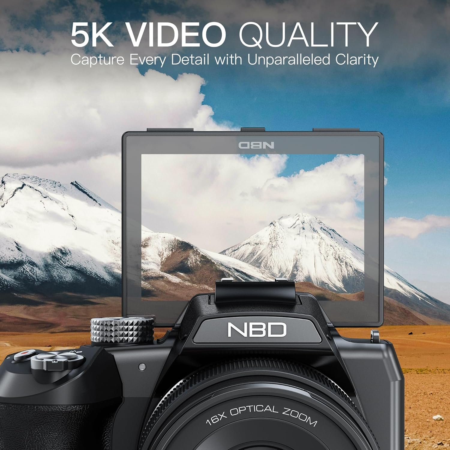 Cameras for Photography – 5K Digital Cameras with 180°Flip Screen, 64MP Vlogging Camera for YouTube, 16X Optical Zoom Shoot Fotograficas, 58mm UV Lens,2 Batteries