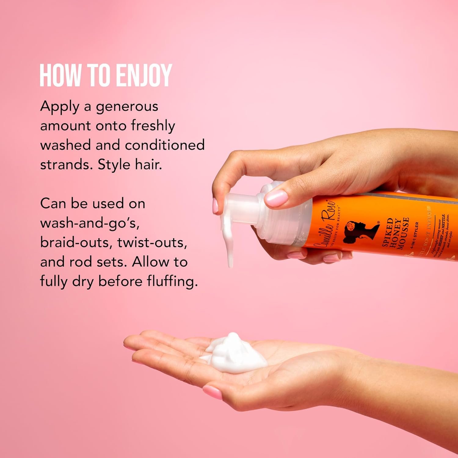 Camille Rose Spiked Honey Mousse, 4-in-1 Hair Styler with Nettle Root, to Nourish and Hydrate Strands, Define Curls, and Add shine, for All Hair Types, 8 fl oz