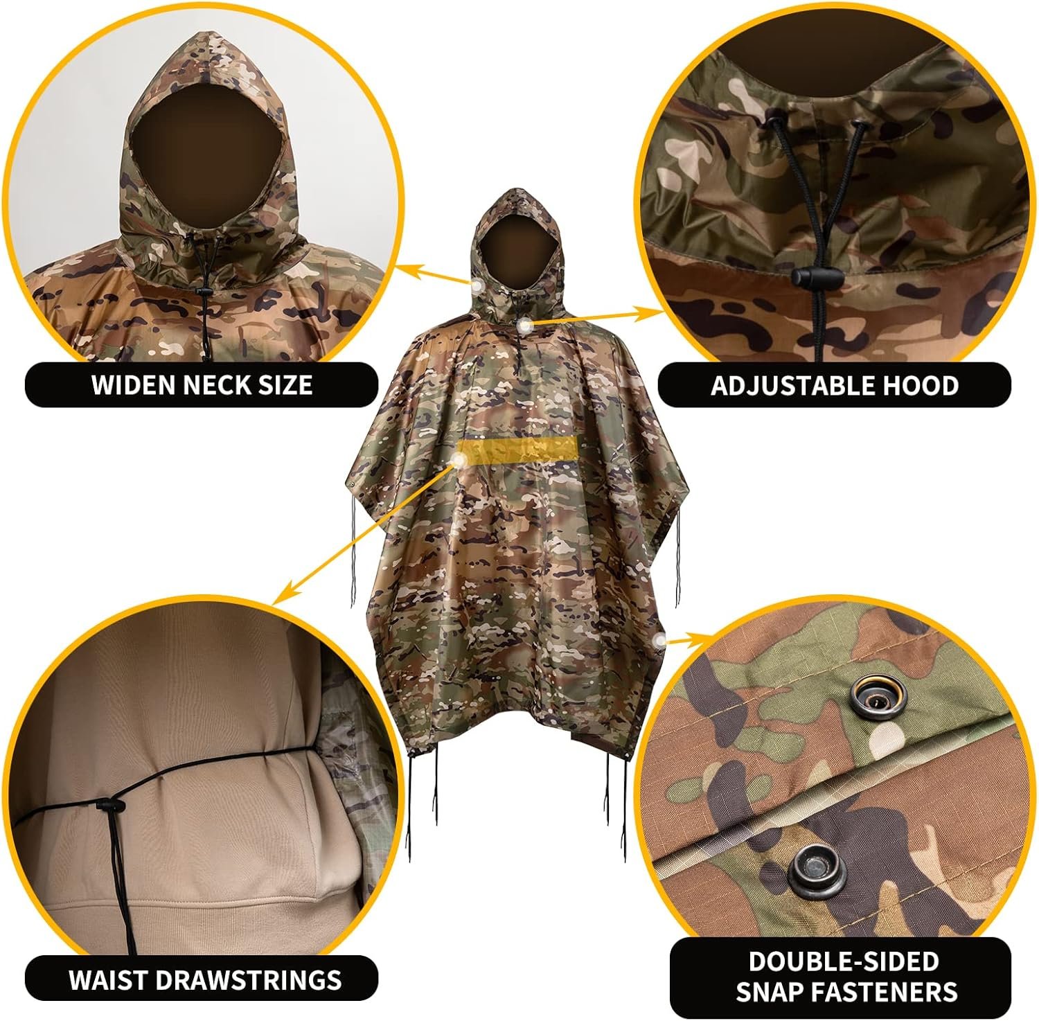 Customers praise the poncho’s rip stop material and its effectiveness in keeping them dry in rain, with one mentioning it worked perfectly during a day-long storm. Moreover, the size is practical, fitting inside stadium backpacks, and customers find it offers good value, with one noting it’s nicer than disposable alternatives. However, the material thickness receives mixed feedback, with some appreciating the thick plastic while others find it thin. Additionally, the color pattern and head hole size also get mixed reviews.