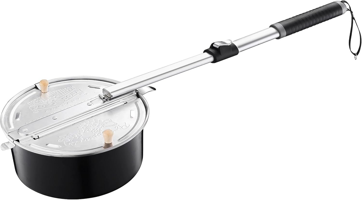 EXTENSION HANDLE – This innovative piece of campfire cooking equipment has a Cool Tube handle with a comfort grip. The popcorn pan handle extends up to 22.8-inches-long to keep your hands safely away from the heat of the flames.