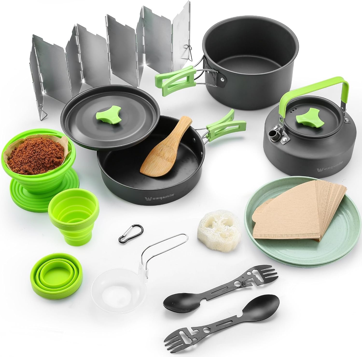 Camping Cooking Cookware Mess Kit – Non-Stick Lightweight Pot Pan Kettle Set with Collapsible Pour Over Coffee Dripper, Outdoor Kitchen Cook Essentials Gear for Camping Hiking Picnic