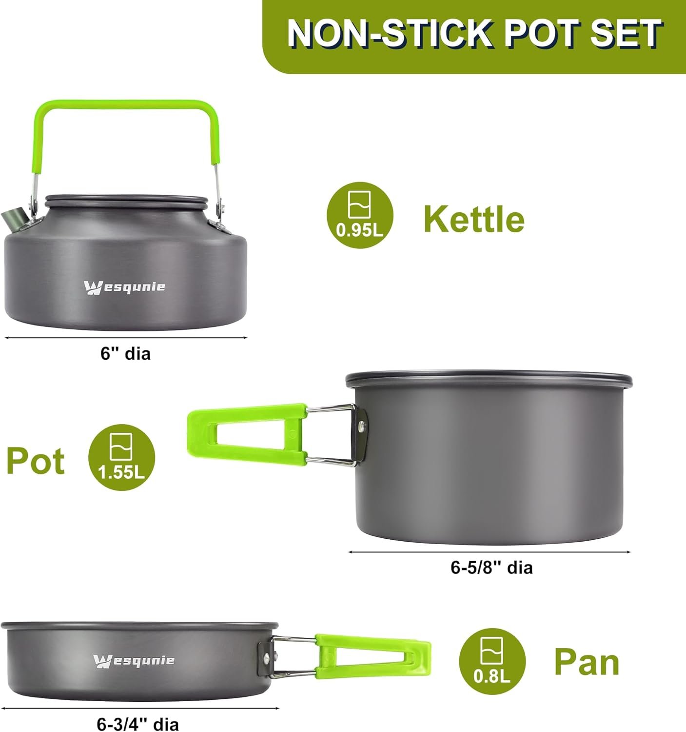 Ideal Cooking Gear for 2 to 3 People Travel – The camping pots and pans can be used on the open fire which is perfect for camping, hiking, backpacking, picnics, etc. Since we do not use chemical layers, the ability of non-stick is limited, please avoid cooking sticky ingredients directly without oil