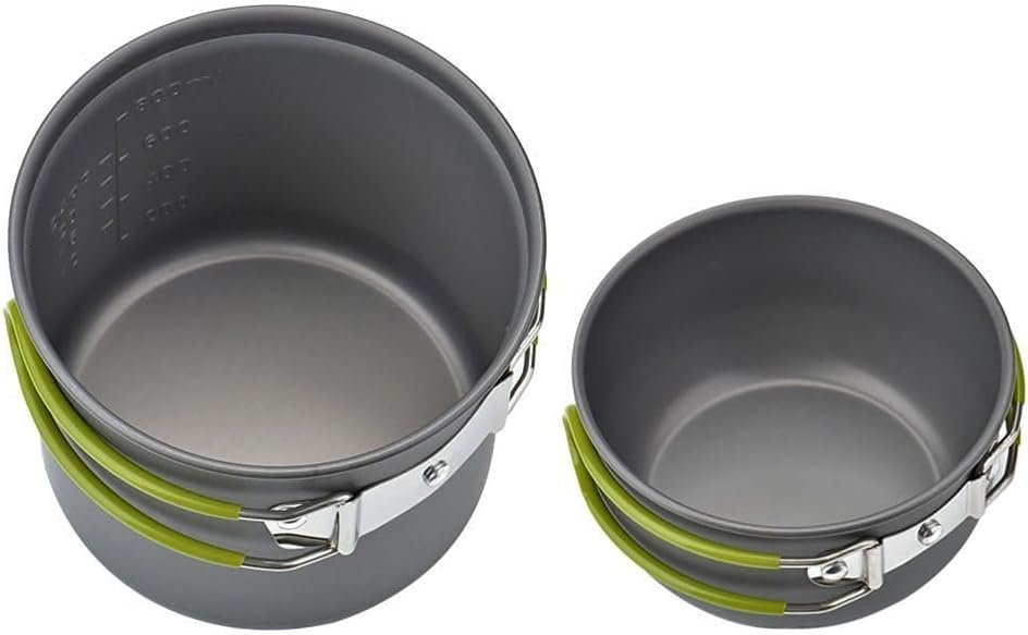Camping Cookware Mess Kit Backpacking Pot Gear Camping Cooking Pots and Pans Set Camp Kitchen Equipment Accessories Green 4.88 x 6.57 inch